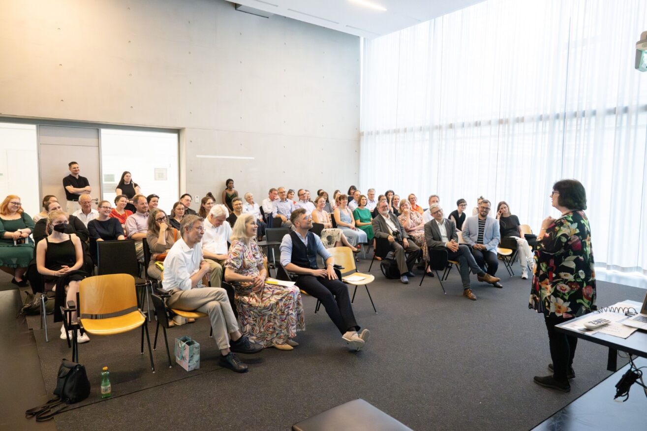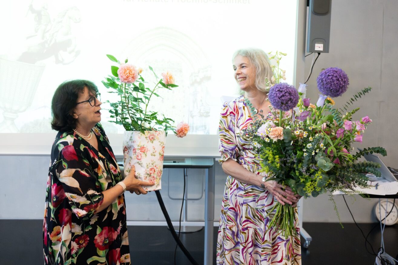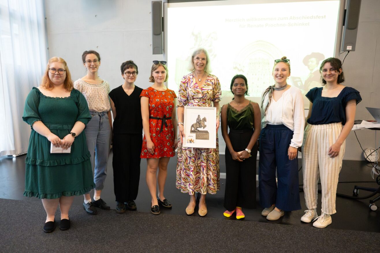 Nach einem knappen Vierteljahrhundert tritt Renate Prochno-Schinkel mit Ende des Sommersemesters 2024 in den Ruhestand. Grund genug, um gemeinsam mit Kolleg:innen der Abteilung, Absolvent:innen und Studierenden sowie zahlreichen Wegbegleiter:innen zu feiern! Christian Sauer von der Katholischen Universität Eichstätt-Ingolstadt und ehemaliger Assistent an der Abteilung Kunstgeschichte hielt eine humorige wie persönliche Rede und bot eine spitzfinde, numerologische Exegese des Wirkens von Renate Prochno-Schinkel. Margit Beling vom Freundesverein der Abteilung ergriff die Stimme der Studierenden, Renate Prochno-Schinkel verband ihre Dankesworte mit einem Rückblick auf die Zeit in Salzburg. Üppige Blumengrüße leiteten über zum gemütlichen Ausklang bei Erfrischungen und kleinen Köstlichkeiten zur Stärkung. Herzlichen Dank an das Team der Abteilung, das in bewährter Weise für die Organisation und einen reibungslosen Ablauf sorgte!