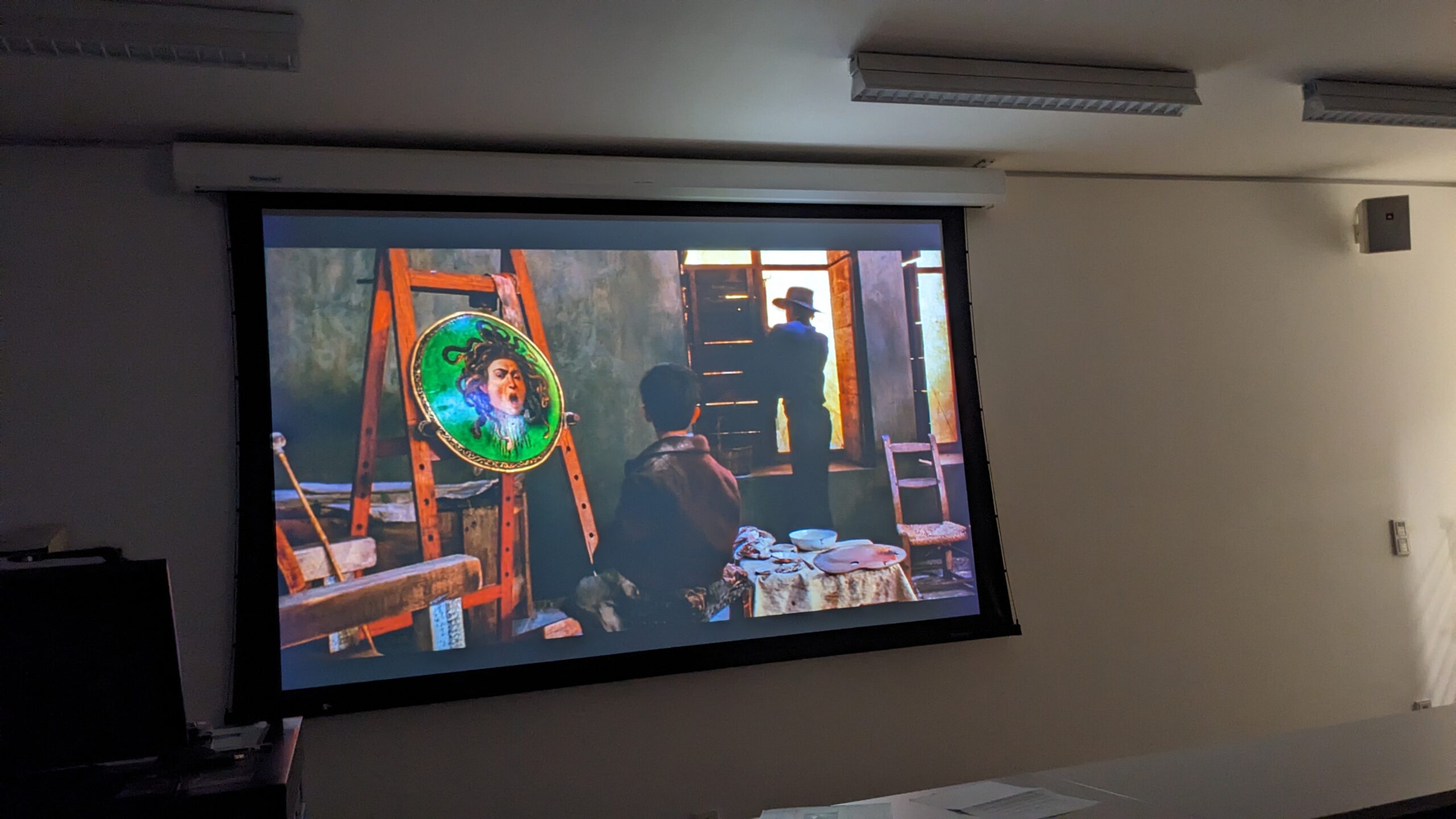 Nach dem klassischen Biopic „Der Schatten des Caravaggio“ (2022) wurde am zweiten Abend unserer Reihe ein weiterer Film über den berühmten Barockkünstler Michelangelo Merisi da Caravaggio gezeigt, diesmal von Derek Jarman aus dem Jahr 1986. Die Diskussion danach spiegelte die unterschiedlichen filmischen Mittel und die abweichende Deutung Caravaggios wider: Während der jüngere Streifen die historische Dramatik aufgreift, führt uns Jarman in eine symbolische Welt voller intensiver Bildkompositionen, gewitzter Anachronismen und poetischer Off-Kommentare. Beide Filme zeigen Caravaggio als vielschichtige Persönlichkeit und lassen viel Raum für eigene Interpretationen – etwa bezüglich der Frage, wie sich Kunst und Leben zueinander verhalten. Ein gelungenes Thema für einen weiteren gelungenen Filmabend.