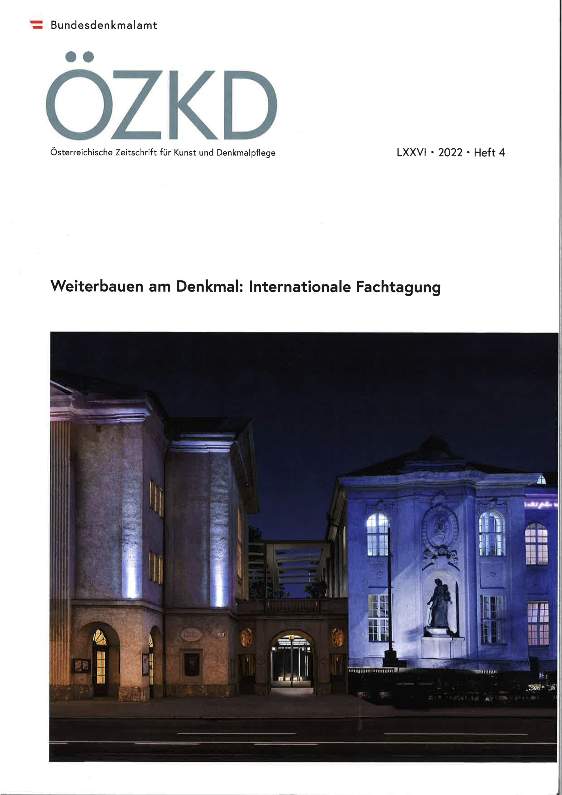 Im November 2021 fand die von der Abteilung Kunstgeschichte initiierte und gemeinsam mit der Initiative Architektur und dem Bundesdenkmalamt organisierte internationale Fachtagung „Weiterbauen am Denkmal“ statt. Die Tagungsbeiträge sind nun in der Österreichischen Zeitschrift für Kunst und Denkmalpflege erschienen.