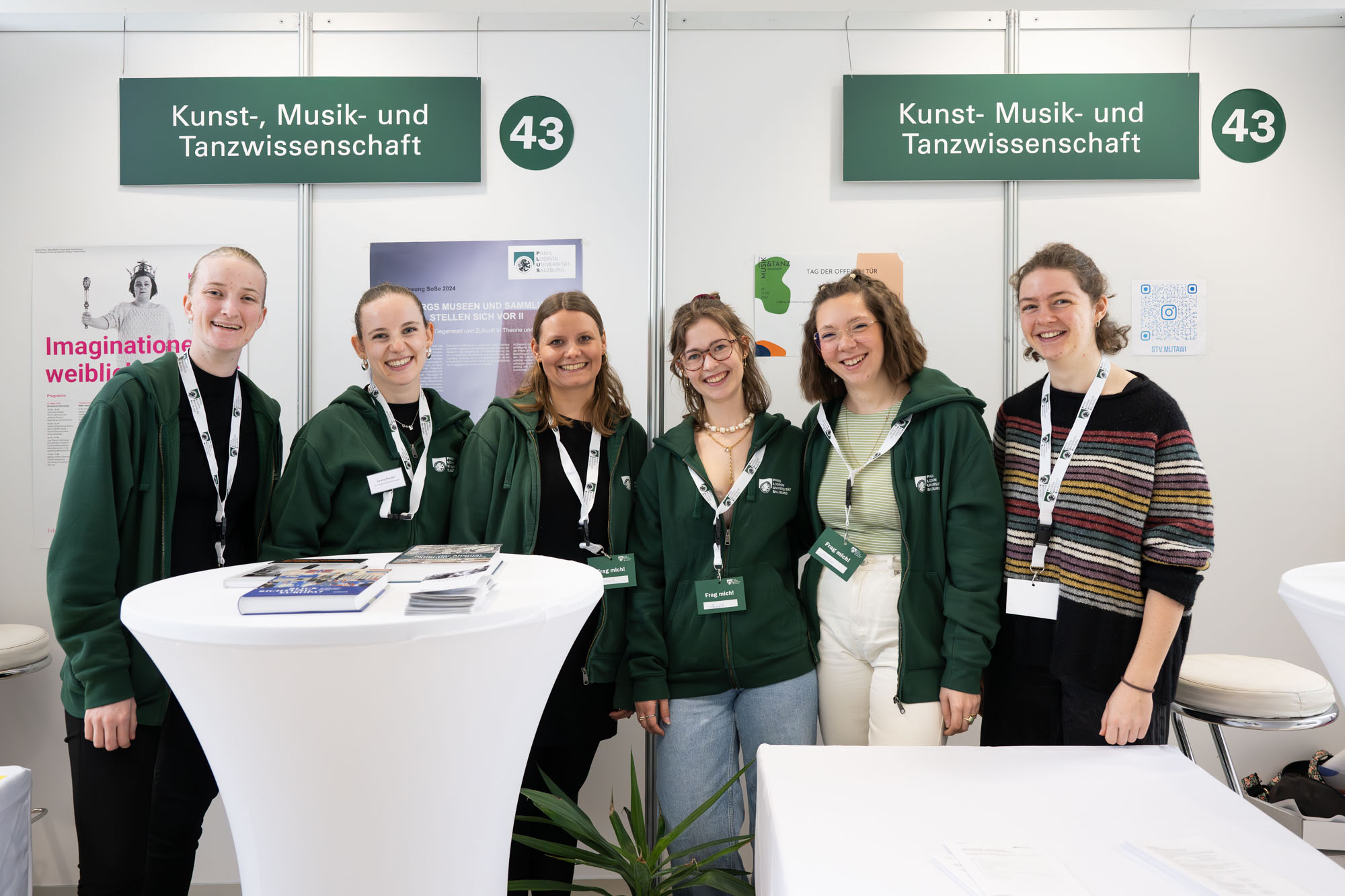 Am 12. März öffneten sich die Tore unserer Universität, und auch die Kunstgeschichte war zahlreich vertreten. Am Infostand unseres Fachbereichs informierten Leona Remler und Eva Wiegert über das Studium der Kunstgeschichte, die Abteilungsschwerpunkte und mögliche Berufsfelder. Im Grünen Hörsaal konnten die Besucher·innen nicht nur Hörsaalluft schnuppern, sondern auch Sigrid Brandts Kurzvortrag über Architektur in Salzburg lauschen. Der Grundkurs zur Ikonografie von Matthias Weiß war ebenfalls geöffnet und im Rahmen der Führung durch den Unipark präsentierte David Hobelleitner die Räumlichkeiten unseres Fachbereichs. Unser Fotograf, Hubert Auer, hat das Geschehen wie immer fotografisch festgehalten. Wir danken allen Beteiligten für das gute Gelingen und natürlich den zahlreichen interessierten Besucher·innen! Wir freuen uns, viele von ihnen im neuen Semester als Studierende begrüßen zu dürfen!