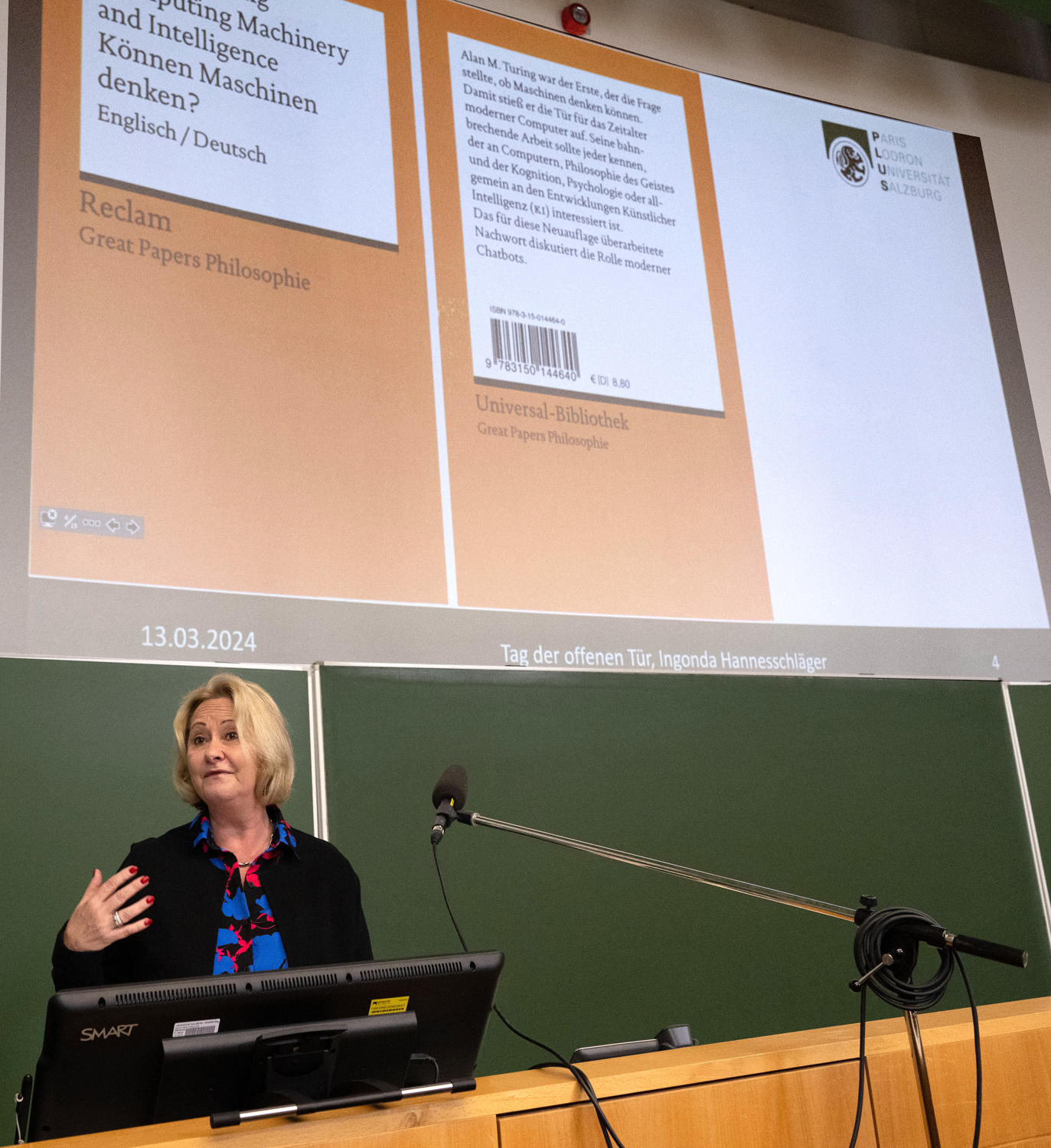 Ingonda Hannesschläger bei ihrem Kurzvortrag im Grünen Hörsaal