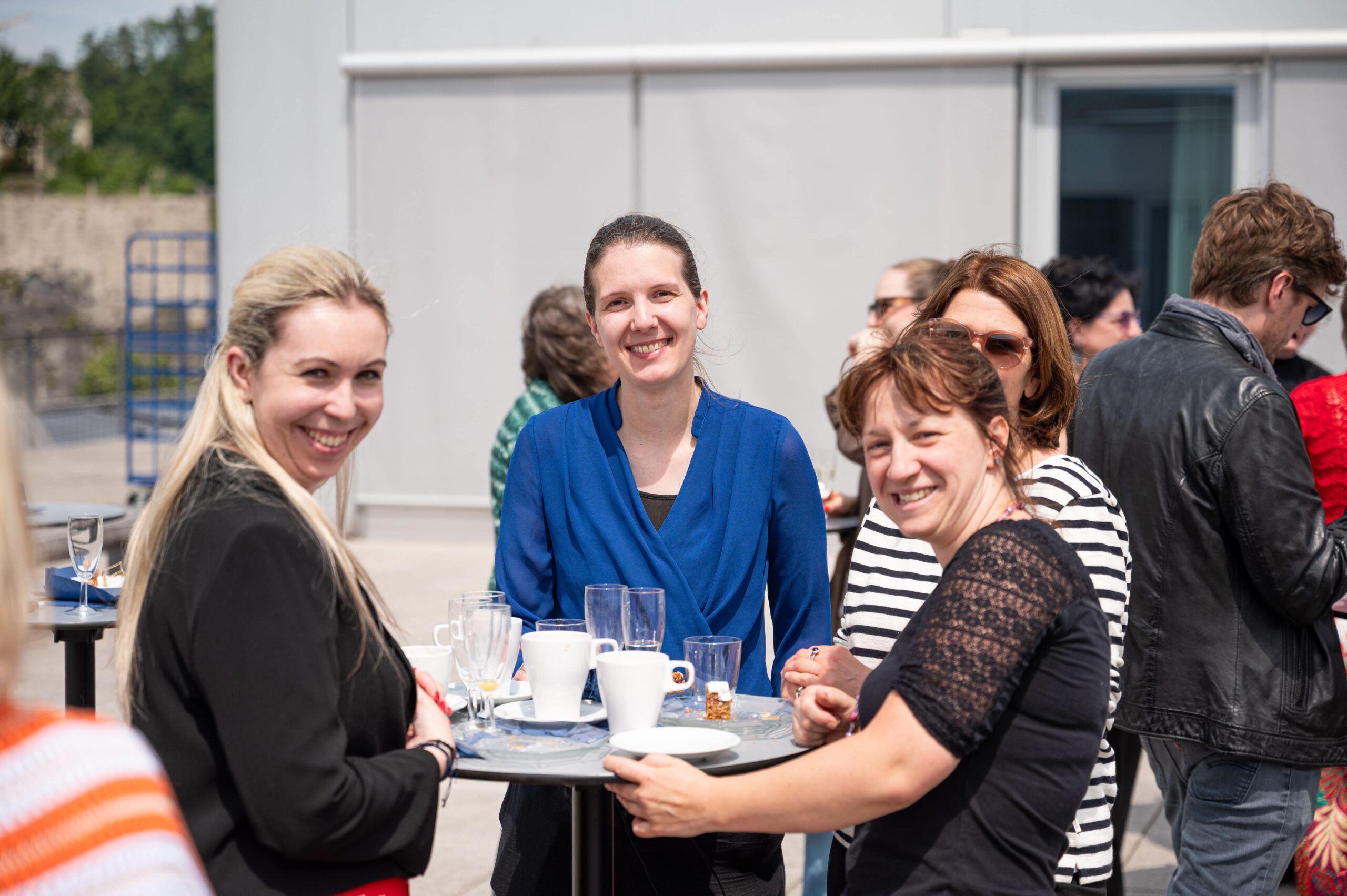 Bei strahlendem Frühsommerwetter luden Julia Kloss-Weber und David Hobelleitner die Kolleg·innen des Fachbereichs auf die Dachterrasse des Uniparks zum Einstandsfest ein. Julia Kloss-Weber hat im März die Professur für Kunstgeschichte mit dem Schwerpunkt Frühe Neuzeit übernommen, David Hobelleitner ist ebenfalls seit März als PostDoc-Mitarbeiter zurück an der Abteilung Kunstgeschichte. In entspannter Atmosphäre wurde bei delikaten Brötchen, feinem Gebäck und einem Glas kühlen Prosecco auf einen gelungenen Start und eine gute Zusammenarbeit angestoßen.