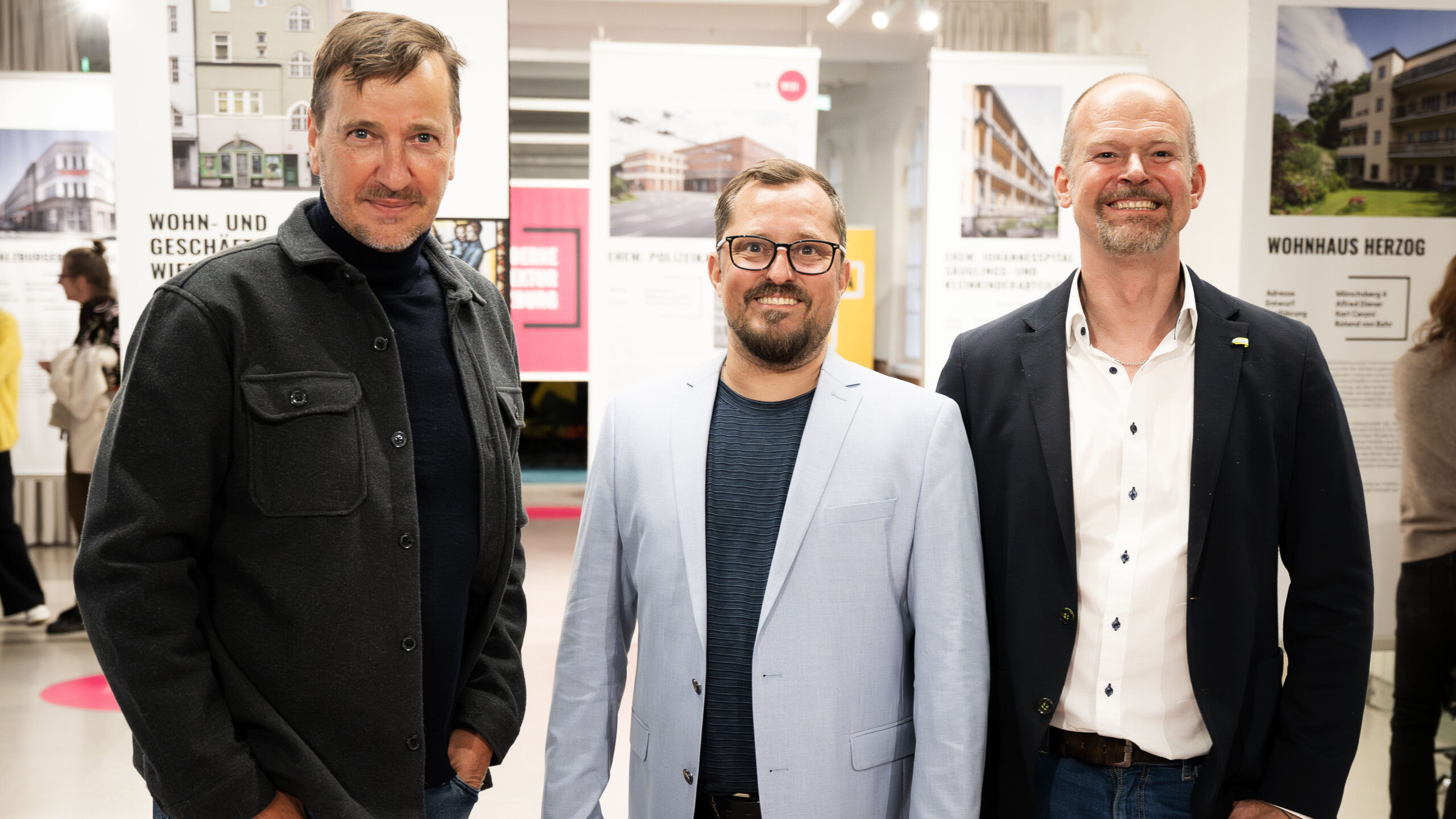 Die Drei von der Ausstellung: Hubert Auer, Matthias Weiß und Nicolas Sturm von Wie der Wind | Agentur für Kommunikation -