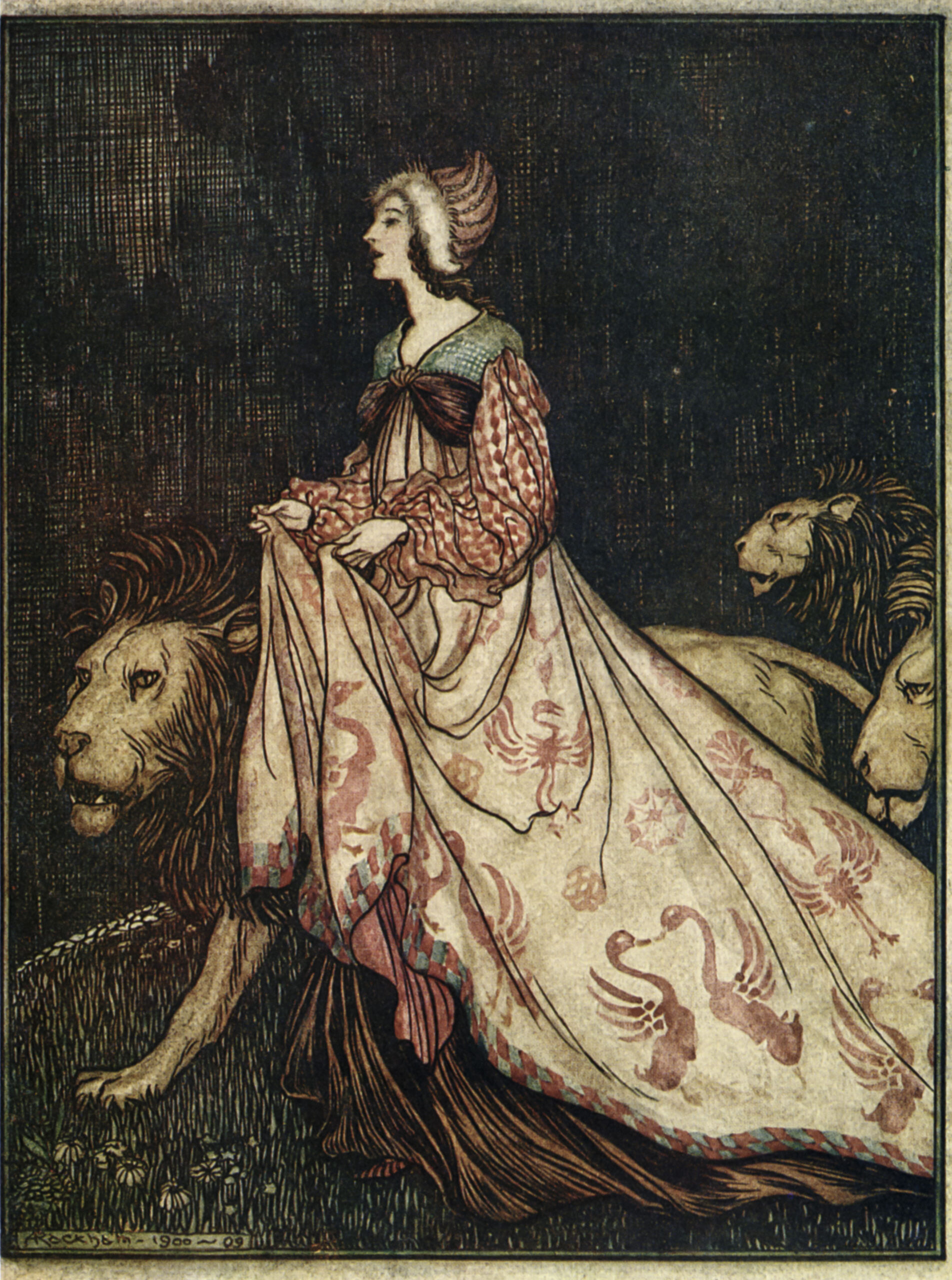 Arthur Rackham, Illustration zu "The Lady and the Lion" (Das singende, springende Löweneckerchen), 1909.