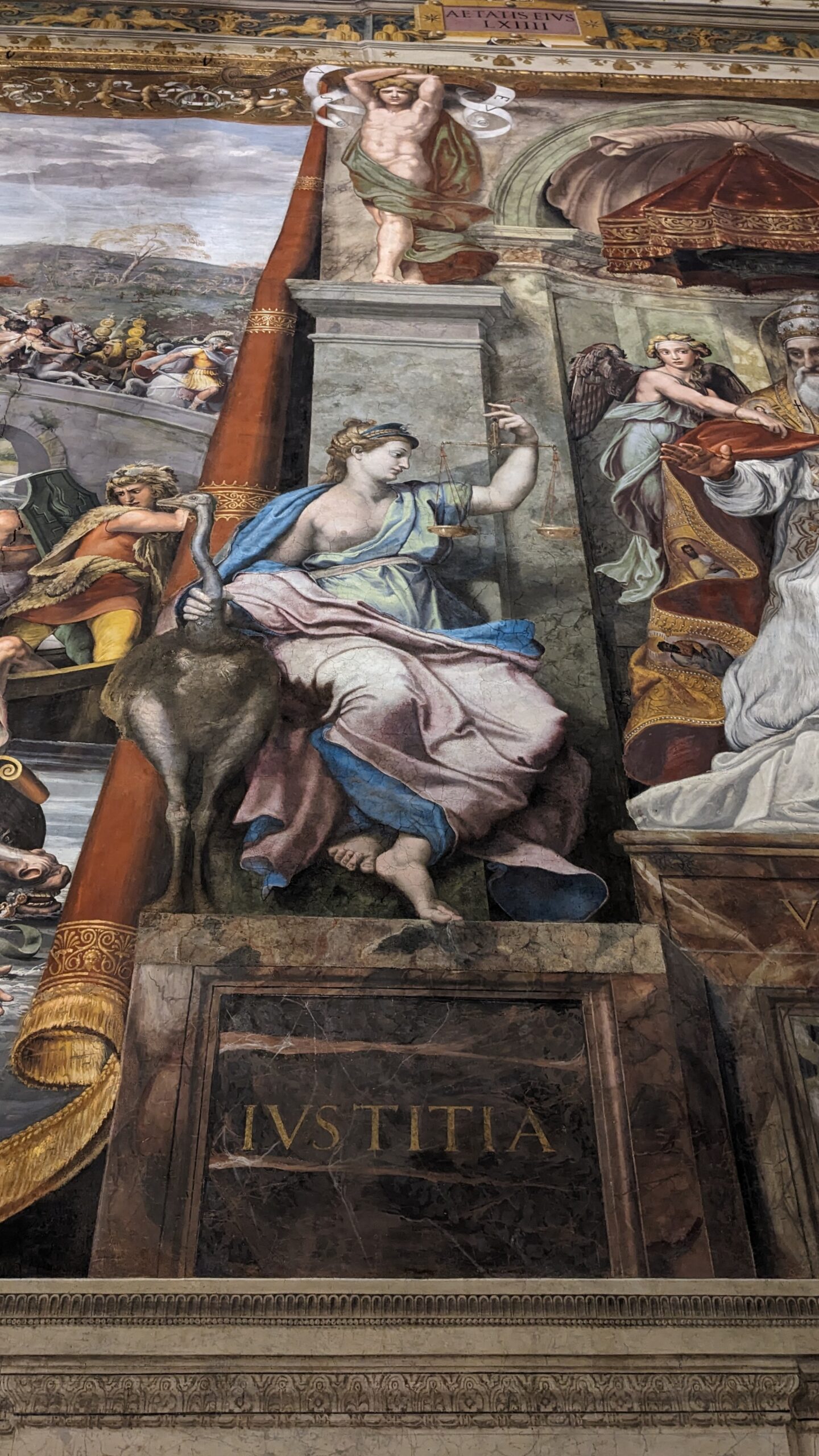Alte Bekannte: die Allegorie der Gerechtigkeit – hier mit Vogelstrauß -
