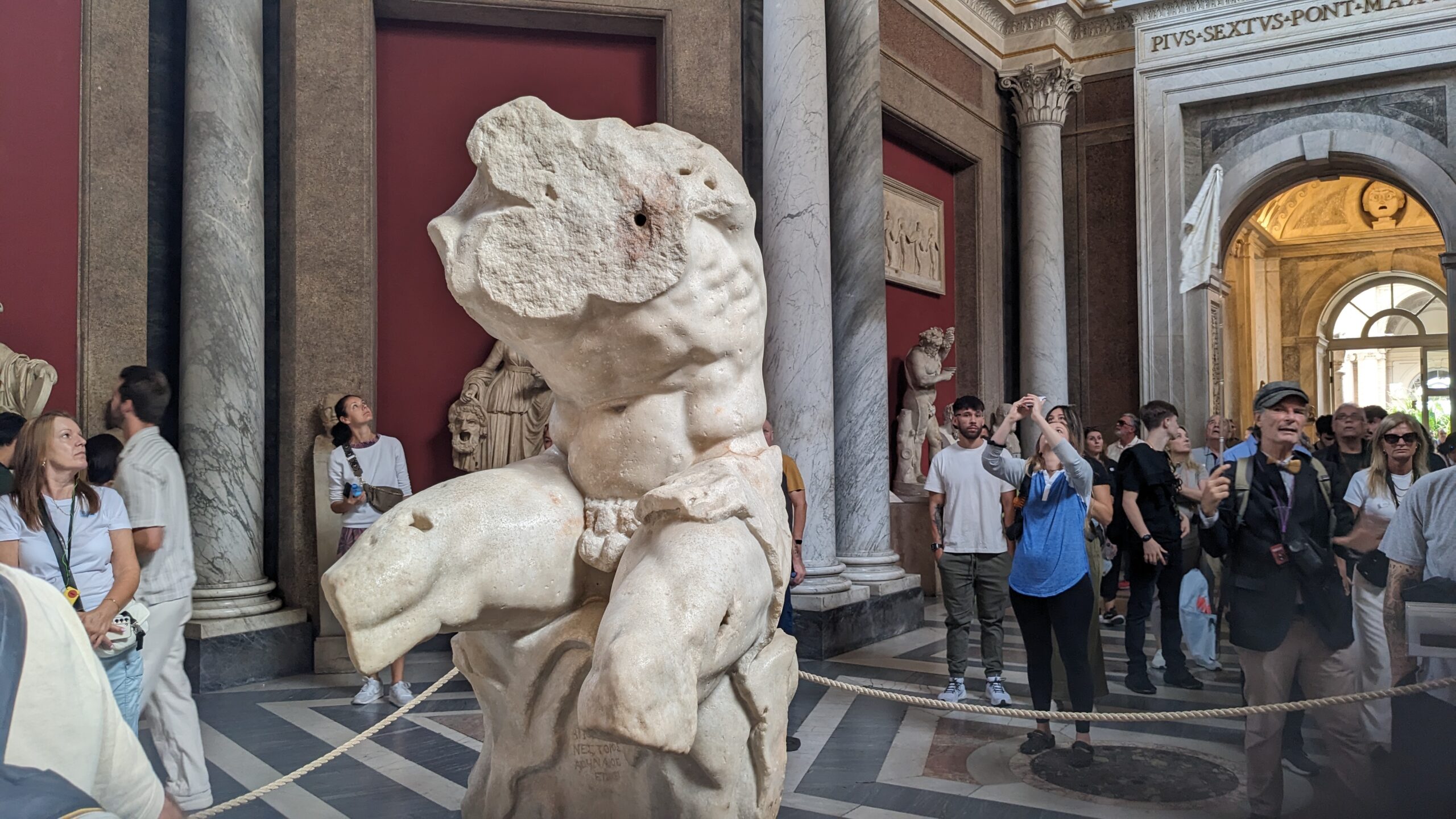 Die Romreise von Matthias Weiß diente auch der sogenannten „Erweiterung der Denkmälerkenntnis“ – sprich: auf dem Programm stand ein längst überfälliger Besuch in den Vatikanischen Museen, bei denen es sich um eine wahre Schatzkammer handelt. Im Original zu bestaunen waren viele ungesehene Werke, aber auch ein paar alte Bekannte wie eine Allegorie der Justitia oder der berühmte Torso vom Belvedere. Besonderes Highlight war die Enthüllung des nicht minder berühmten Apollo von Belvedere, der wegen Restaurierungsarbeiten über Jahre nicht zu sehen gewesen war.