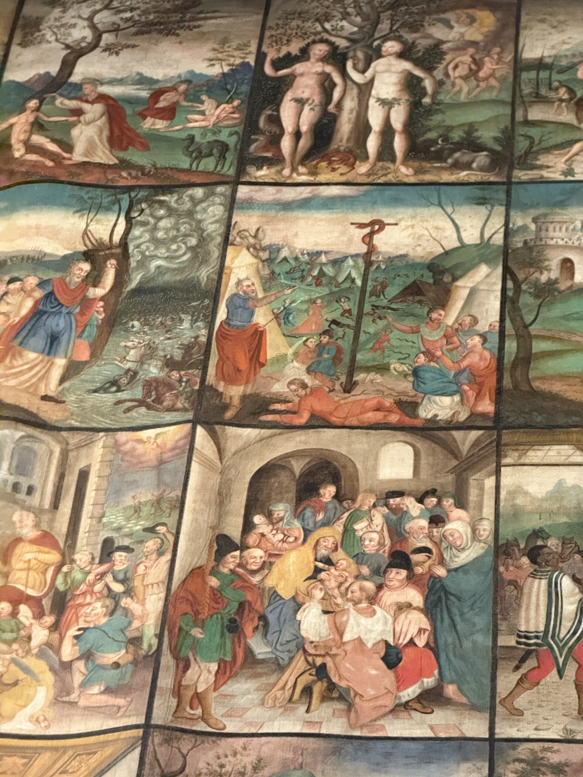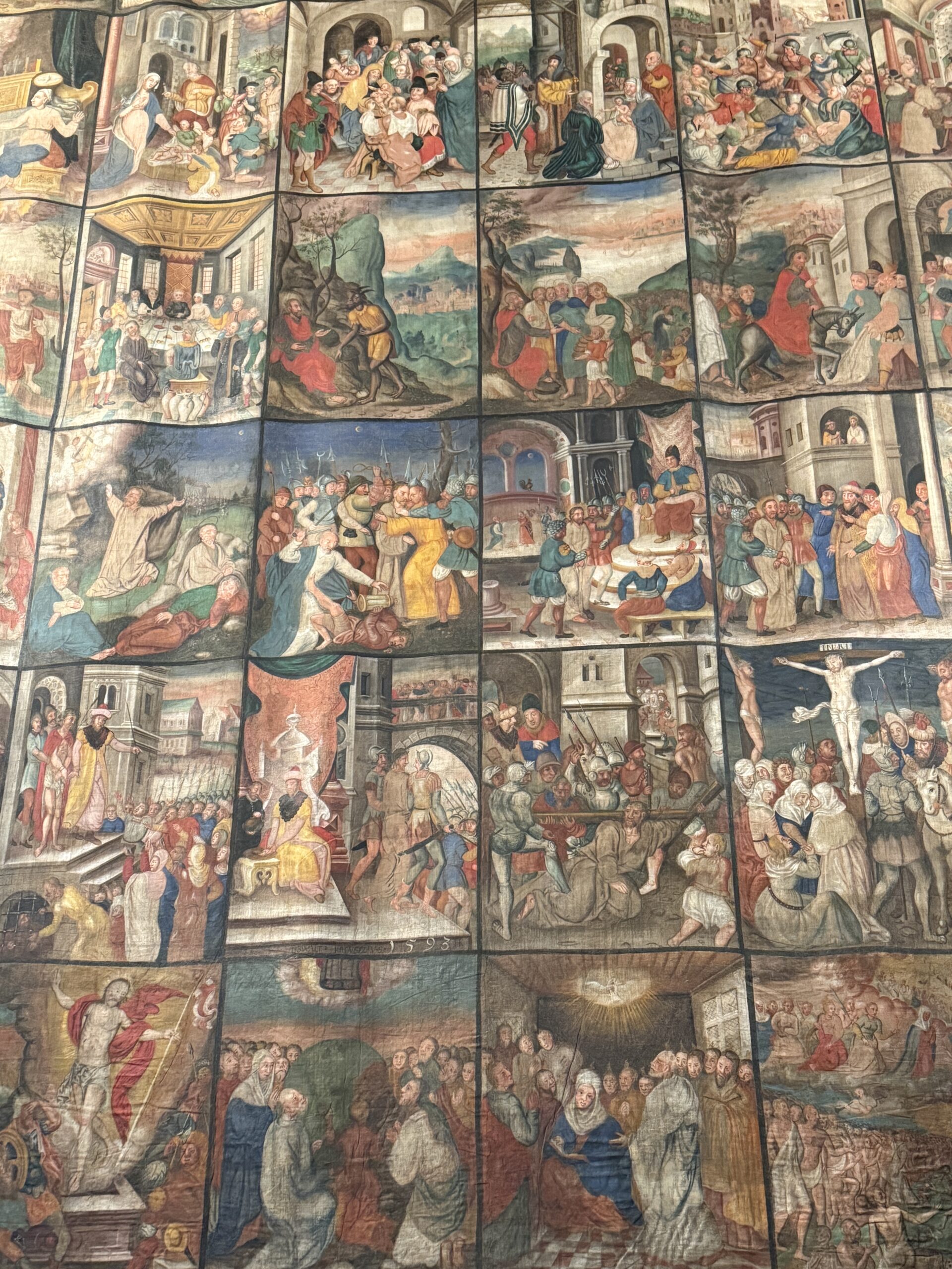 Ein Wochenendausflug nach Kärnten gab Matthias Weiß – gleichsam als Nachtrag zum Seminar Textile Künste – die Gelegenheit, das Millstätter Fastentuch zu bewundern: Zwölf Szenen aus dem Alten Testament und 29 Szenen aus dem Neuen Testament malte Oswalt Kreusel im Jahr 1593. Bis heute im liturgischen Gebrauch, verdecken sie noch bis Ostern den Altar der Pfarrkirche in Millstatt am See.