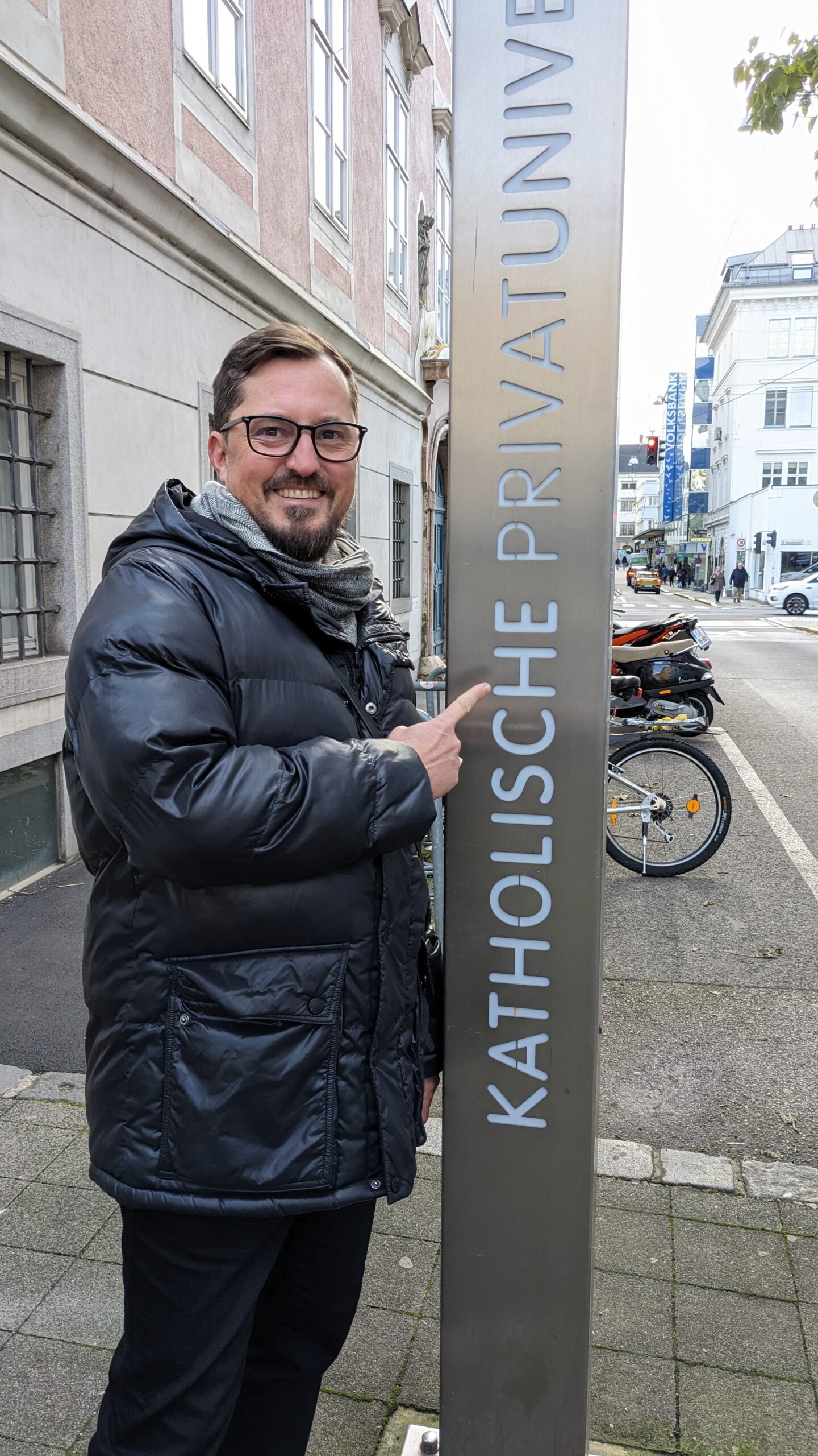 Matthias Weiß vor der Linzer Uni in der Bethlehemstraße. Foto: Nicolas Sturm