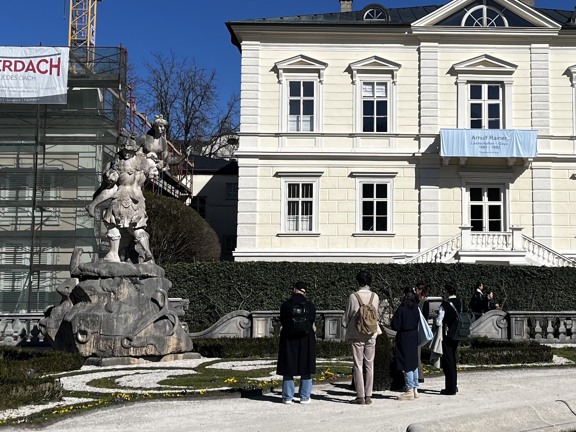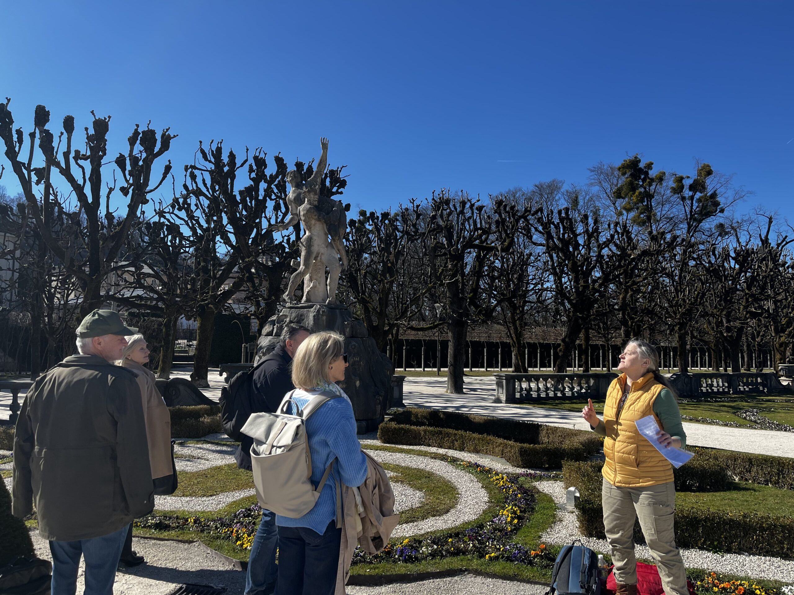 Bei strahlendem Frühlingswetter begab sich der diesjährige Grundkurs Ikonografie unter der Leitung von Matthias Weiß auf eine Mini-Exkursion zum Vier-Elemente-Brunnen im Mirabellgarten. Die kunsthistorische Auseinandersetzung mit mythologischen Bildthemen erfolgte dabei nicht im Hörsaal, sondern in direkter Anschauung.