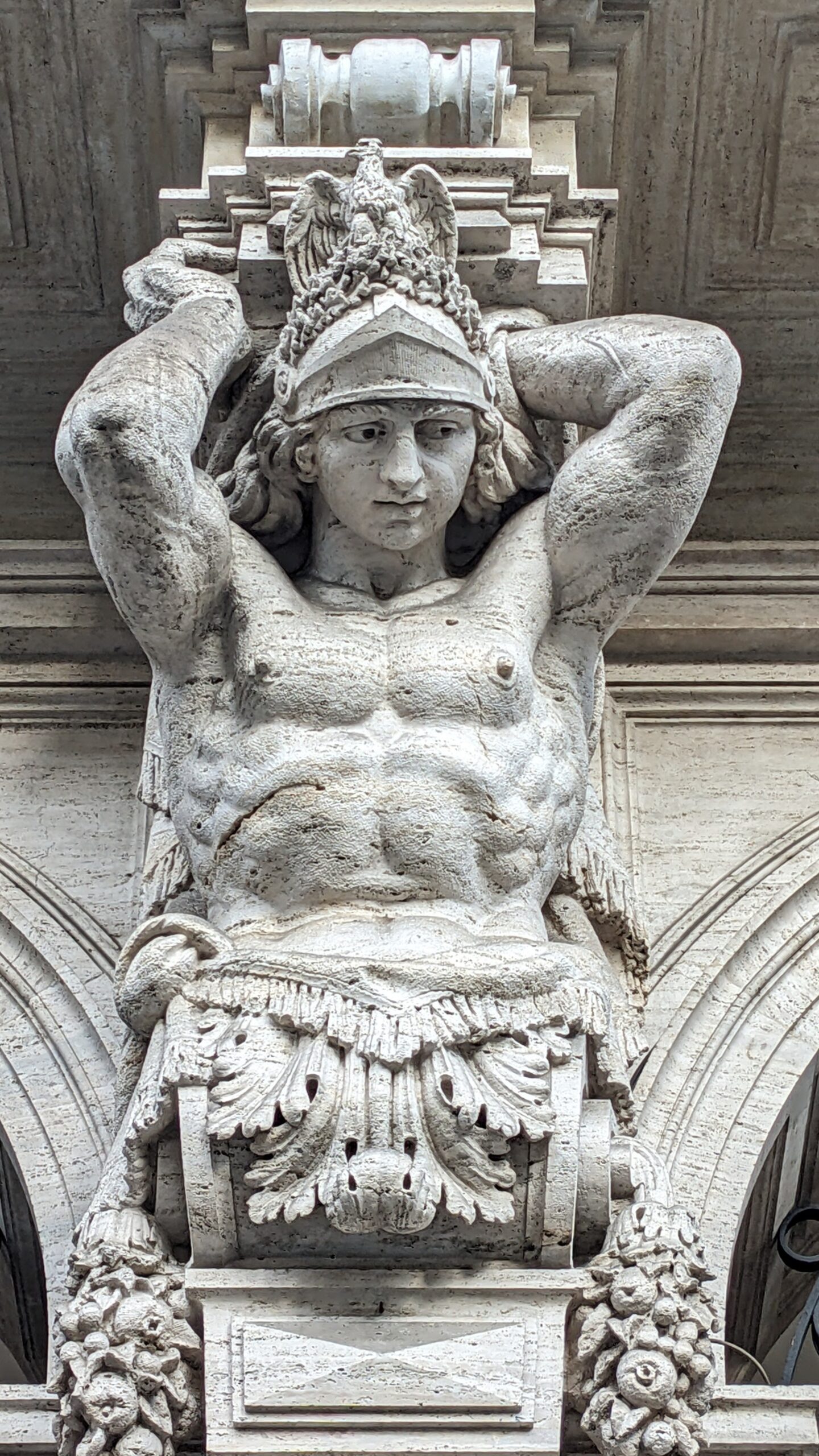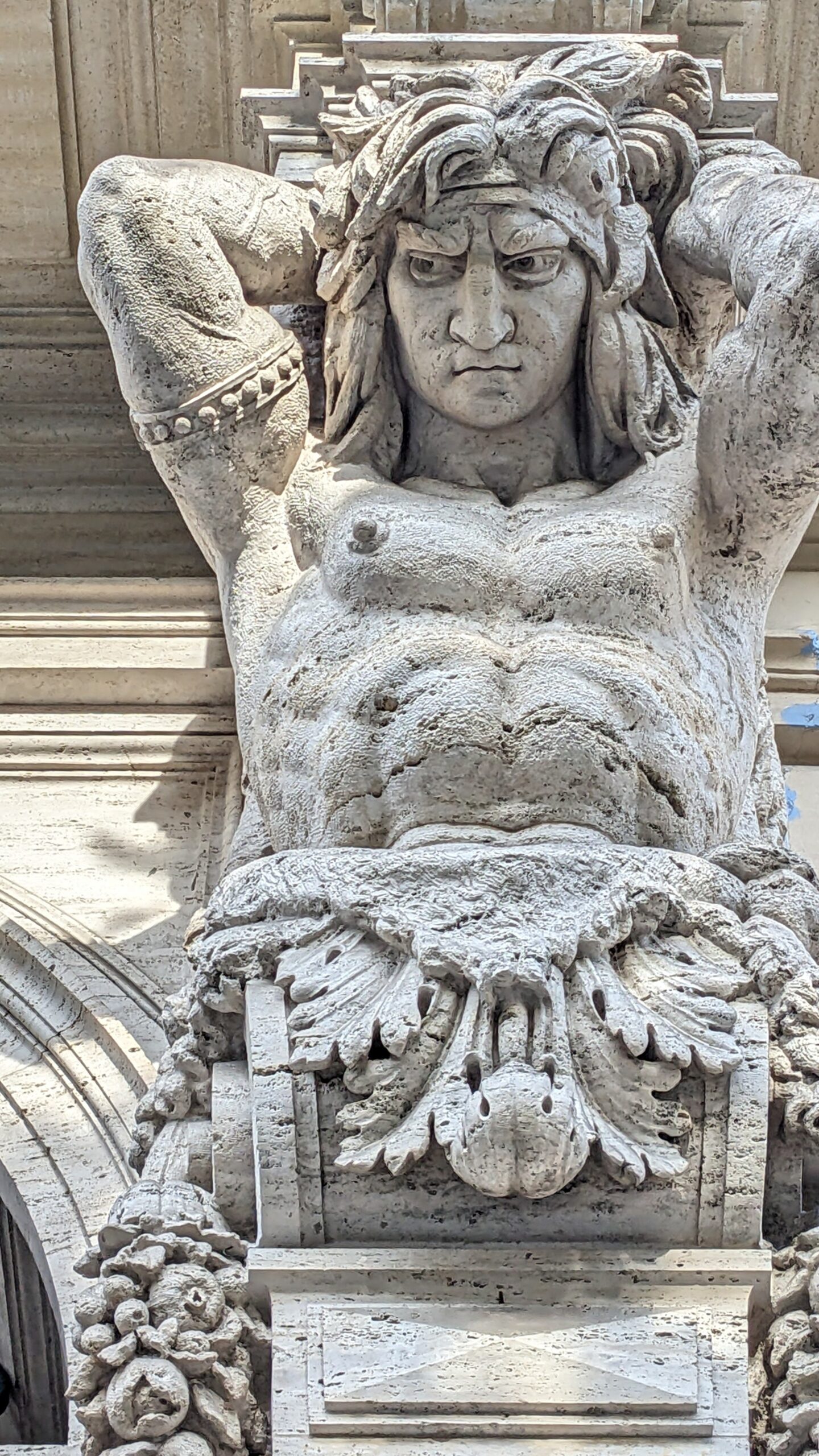 Allegorische Darstellung Europas, hier ausnahmsweise als junger Mann (Atlasherme) am Zugang zu The Westin Excelsior Rome. KURZAUFENTHALT IN ROM