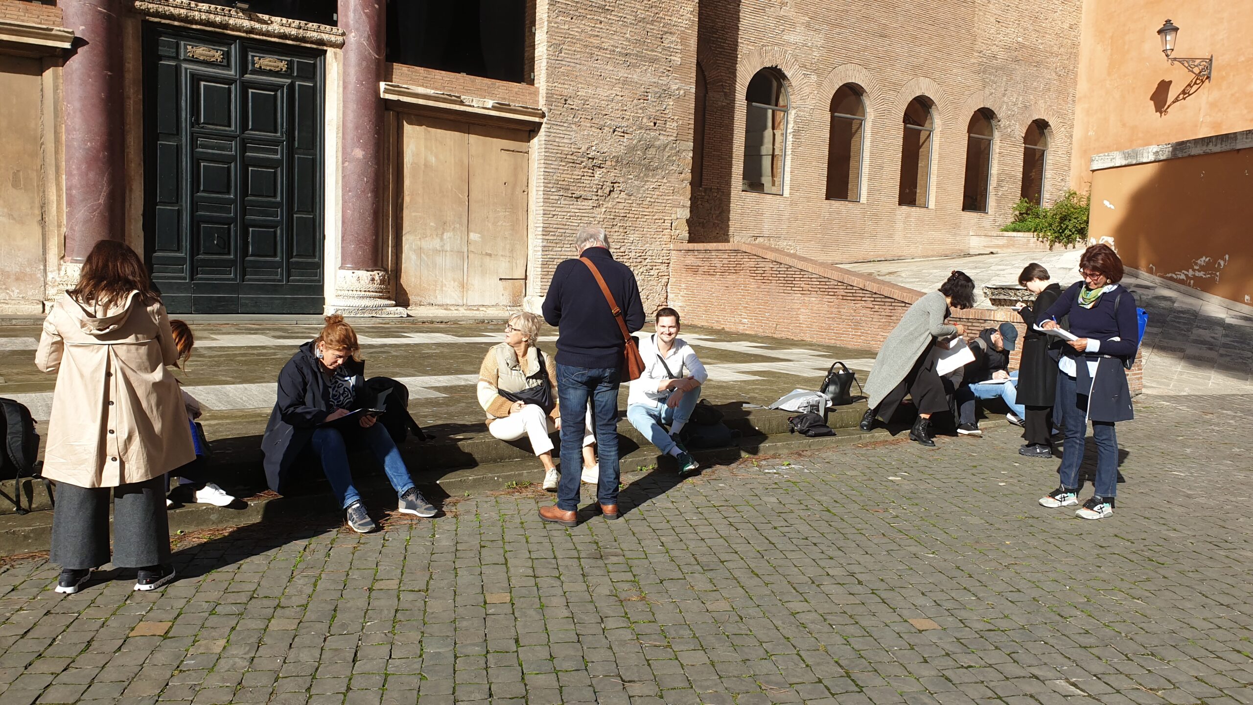 Auf der Exkursion nach Rom erkundeten die Studierenden von Renate Prochno-Schinkel frühchristliche Architektur und Ikonographie: Apsismosaike, frühe Kirchenbauten, und in den Pausen die Bars. Ein sonniger Novembervormittag war in Anschluss an eine kürzlich gehaltenen Vorlesung Raffael und seinen Arbeiten in der Villa Farnesina in Trastevere gewidmet.