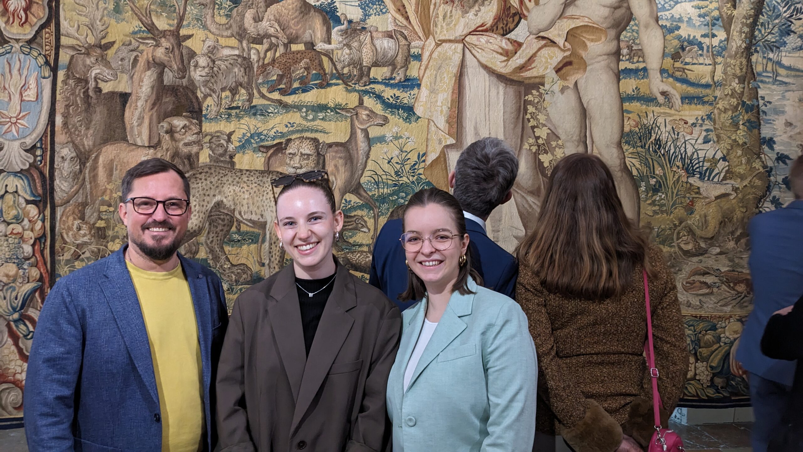 Am Vormittag des 6.03. wurde im DomQuartier die Ausstellung „ Paradise Lost“ eröffnet. Zu sehen sind sechs monumentale Bildwirkereien aus Brüssel, die im 17. Jahrhundert für die Ausstattung des Salzburger Doms gefertigt wurden. Aus der Abteilung Kunstgeschichte waren Ingonda Hannesschläger, Leona Remler und Matthias Weiß dabei – und Berit Wessoleck, die im Rahmen eines Praktikums an der Restaurierung der wertvollen Stücke beteiligt war. Gezeigt werden diese im Nordoratorium des Doms noch bis in den Herbst, genauer bis 13.10.2025. Ein Besuch lohnt sich, nicht nur für Textilinteressierte.