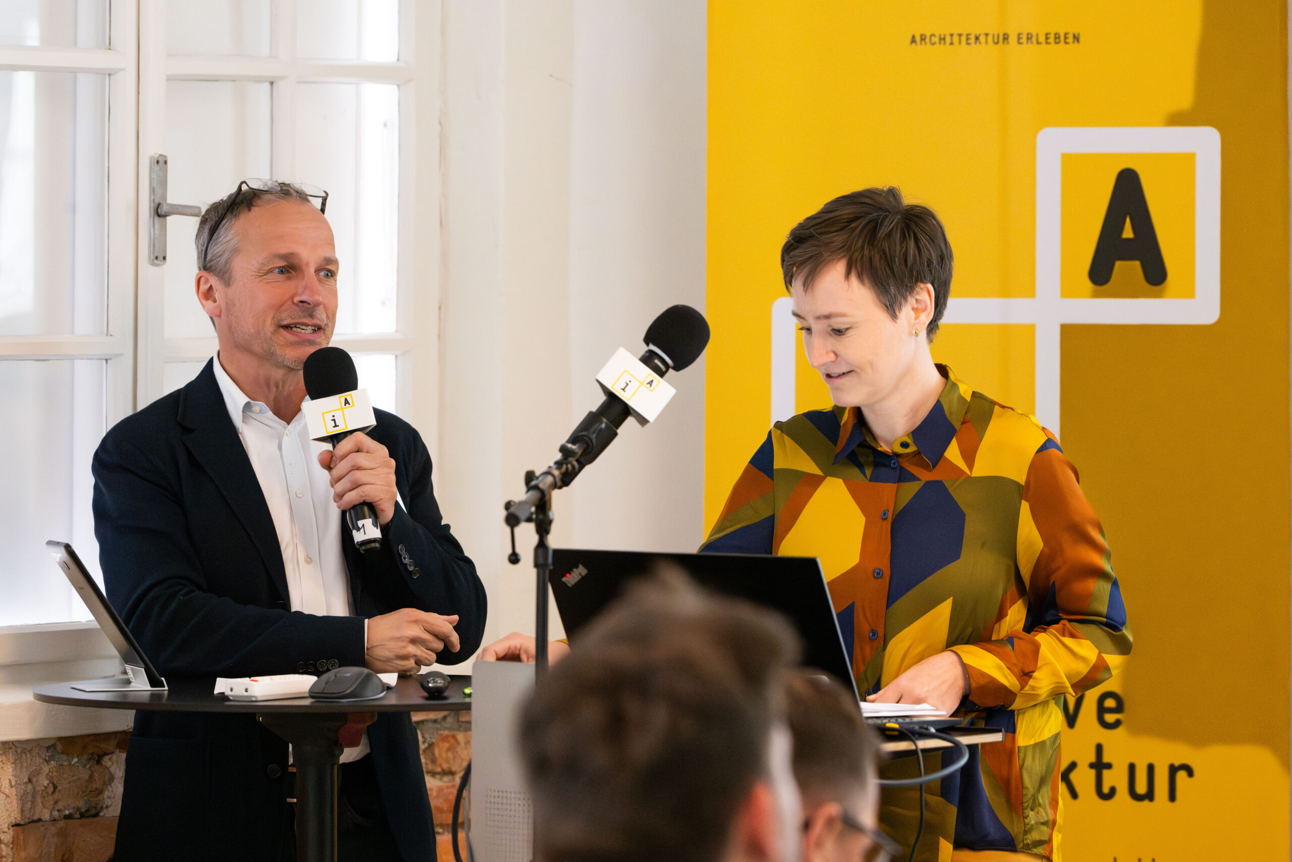 Absolventin der Kunstgeschichte der Uni Salzburg und ehemalige Mitarbeiterin der Initiative Architektur: Jana Prinz (geb. Breuste), vorgestellt von Peter Husty. -