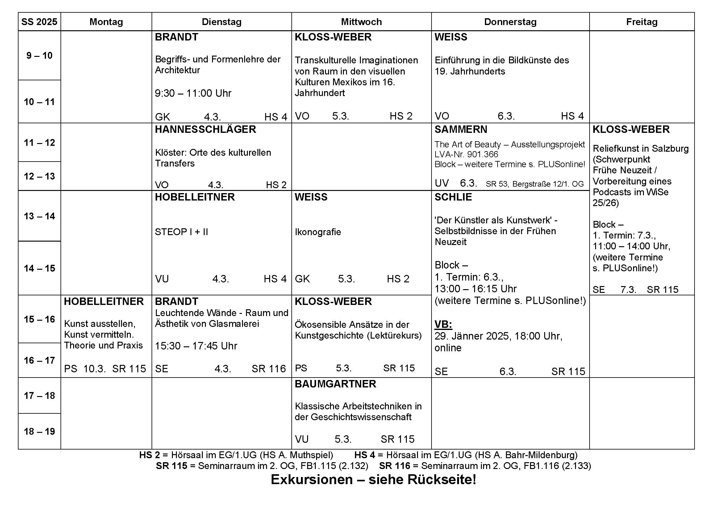 Semester- und Lehrveranstaltungsbeginn (Sommersemester):