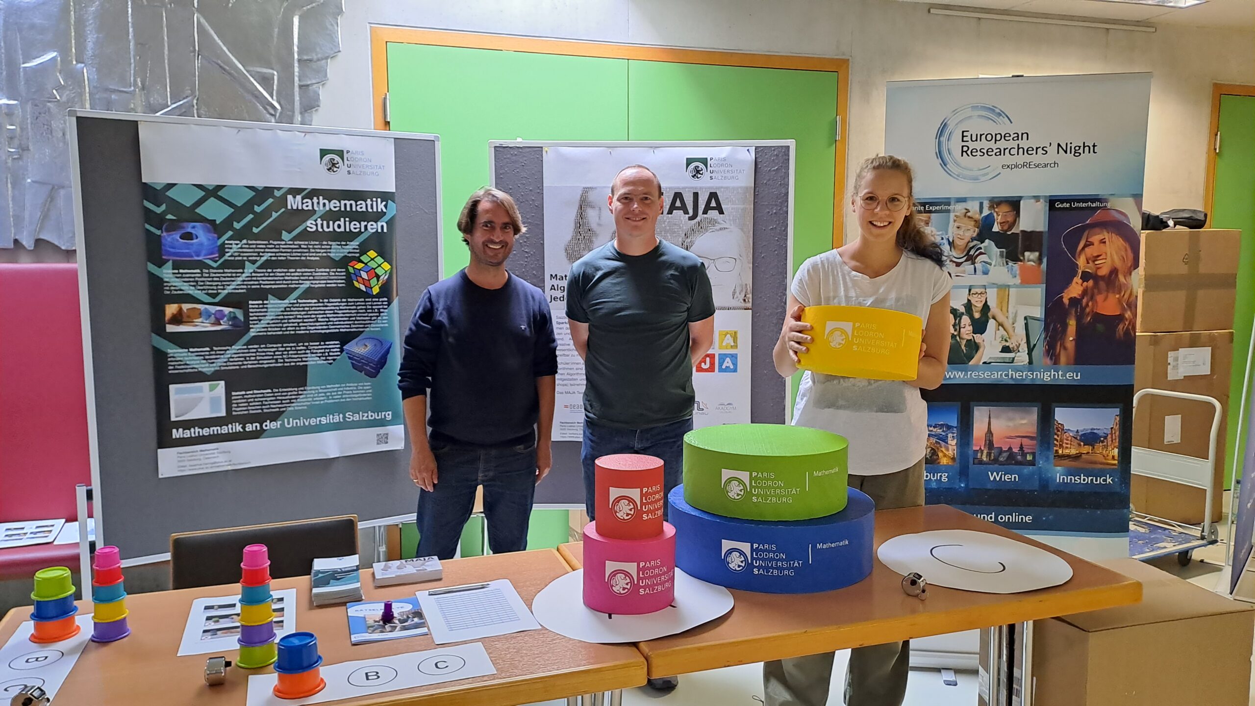 Prof. Blatt, Prof. Ziegler und Dr.in Vukusic, Mitglied des Projekt-Teams, zeigen vor wie es geht. Die Türme von Hanoi