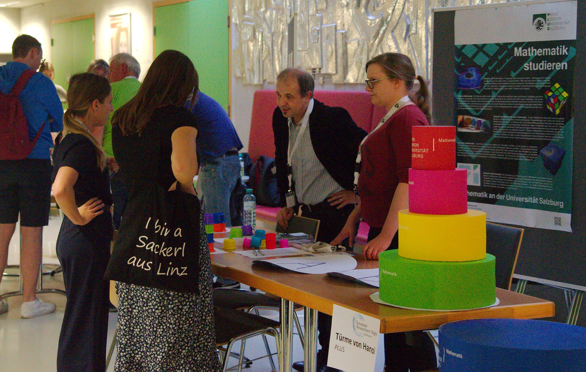 Projektleiter von MAJA, Prof. Clemens Fuchs, bei der interaktiven Station in der Science City Itzling auf der European Researcher's Night 2023 Die Türme von Hanoi