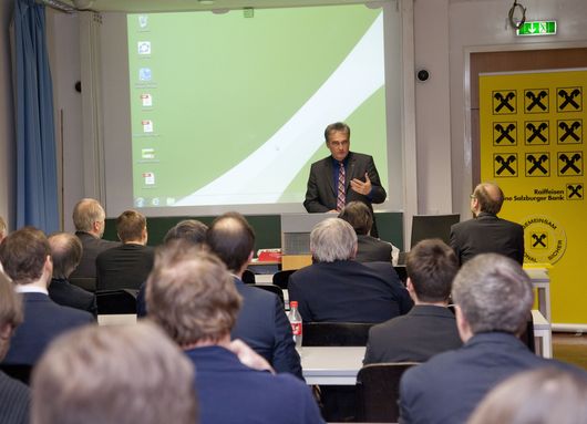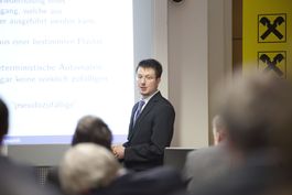 With their short presentations, the prizewinners convinced the large audience of the remarkable quality of their work.Afterwards, Vice-Rector Ao. Prof. Dr Rudolf Feik, the Head of the Department of Mathematics, Prof. Dr Andreas Schröder, who hosted the ceremony, and Director Thomas Nussbaumer from the Raiffeisenverband Salzburg officially awarded this year’s Hans Stegbuchner Prize.Doris Stegbuchner, the wife of Dr Hans Stegbuchner, also congratulated the award winners on their outstanding achievements.The very enjoyable and successful ceremony ended with a small buffet in the foyer of the Department of Mathematics.