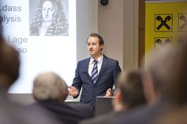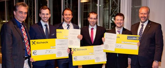 From left: Vizerektor Ao. Univ.-Prof. Dr. Rudolf Feik, Mag. Martin Huemer, Mag. Robert Hemetsberger, Dr. Thomas Singer, Alexander H. Bors, MSc, Mag. Thomas Nussbaumer (Raiffeisenverbund), Univ.-Prof. Dr. Andreas Schröder