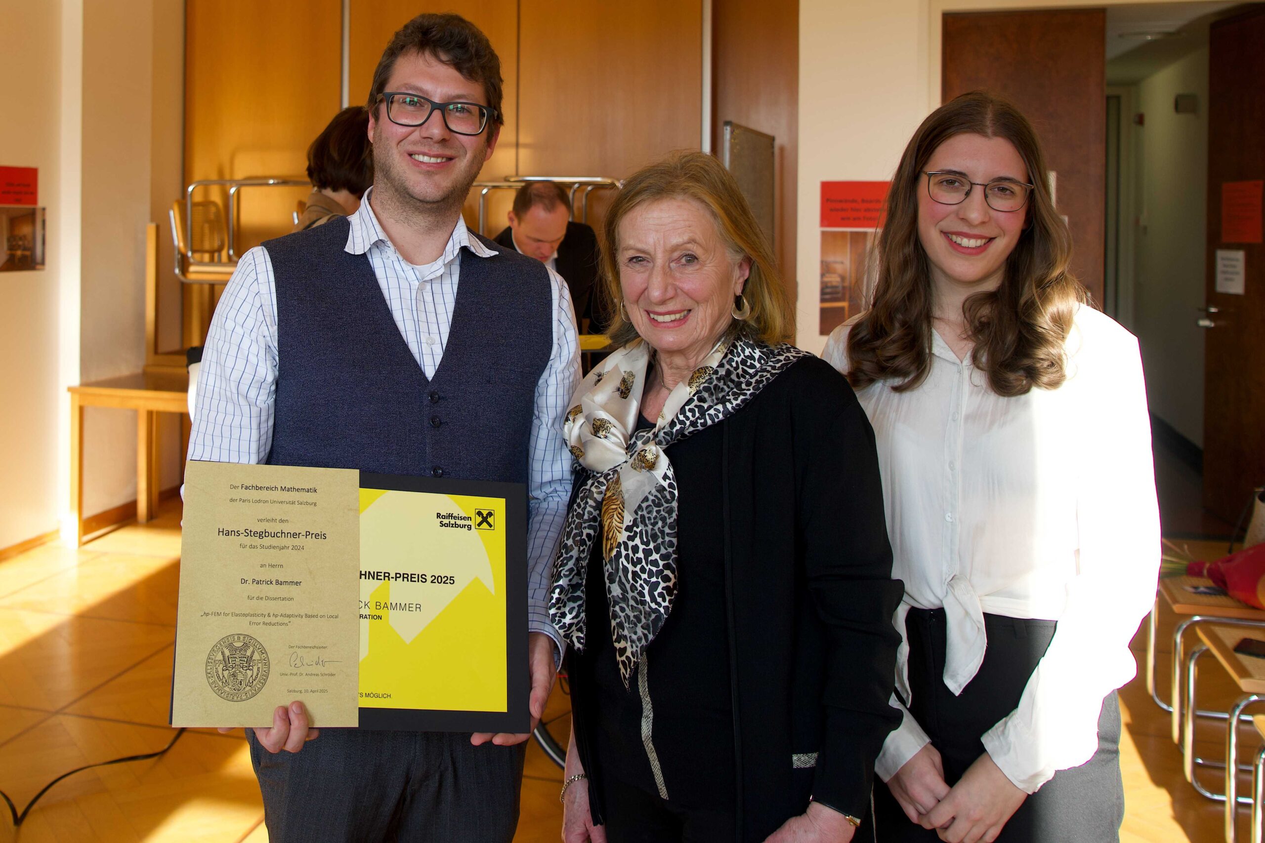 Zum 24. Mal wurde am Donnerstag, den 10. April 2025, der Hans-Stegbuchner-Preis für herausragende Masterarbeiten sowie Dissertationen an eine Mitarbeiterin und einen Mitarbeiter des Fachbereichs Mathematik verliehen. Die Veranstaltung fand im Dekanatssitzungssaal an der Naturwissenschaftlichen Fakultät statt.