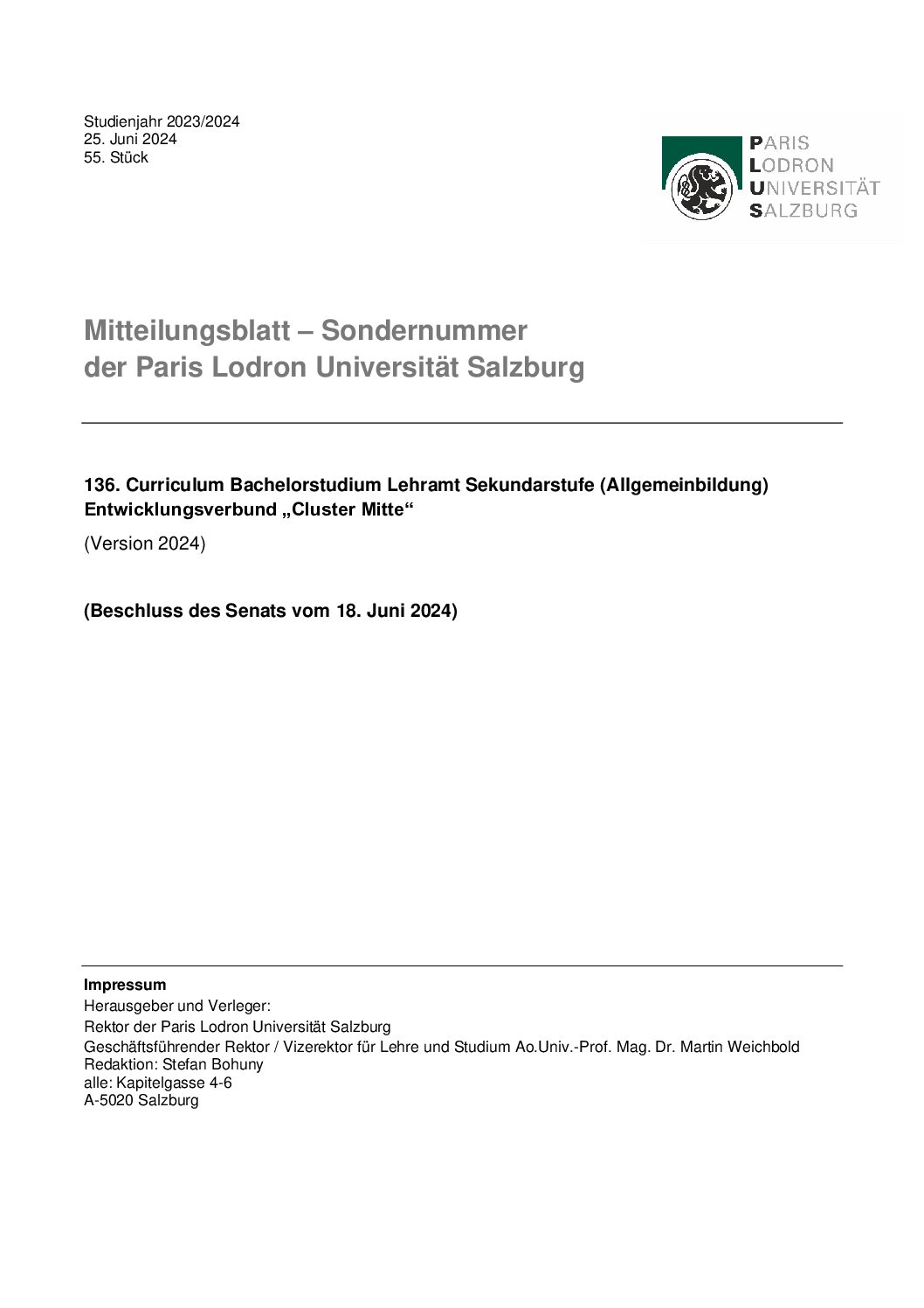 136. Curriculum Bachelorstudium Lehramt Sekundarstufe (Allgemeinbildung) Entwicklungsverbund „Cluster Mitte“