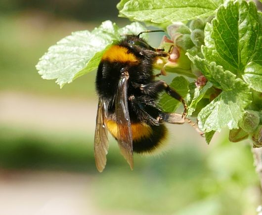 Tree bumblebee (Bombus hypnorum) visiting a black currant flower