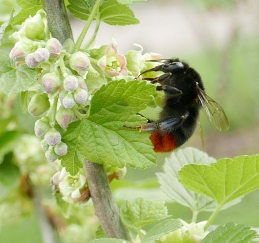 Red-tailed bumblebee (Bombus lapidarius) visinig a black currant flower