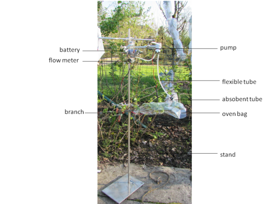 The black currant scent contains around 40 compounds and many of them are very strong. The main compounds are Arbusculone, Linalool oxide furanoid, Linalool, Lilac aldehyde, Linalool oxide pyranoid, Lilac alcohol, Linalyl acetate, Geranyl acetate and some unknown substances. Most of the components could be detected by the tested visitors. There were only a few differences between the honeybee and different bumblebee species. For the discovery of the scent compounds, the scent was collected using a very specific method. For each sample a twig was bagged with a plastic oven bag to accumulate the volatiles. Following that, the air within the oven bags was drawn through a filter by a small pump. Next, the obtained volatiles in the filter were analysed using gas chromatography.