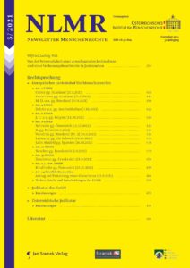 In der neuesten Ausgabe des NLMR befasst sich Kathrin Stiebellehner vor dem Hintergrund des EGMR-Urteils Kurt gg. Österreich mit den Verpflichtungen der Behörden, Frauen vor häuslicher Gewalt zu schützen. Neben diesem Leitartikel enthält das Heft zahlreiche interessante Urteile des EGMR, des EuGH sowie der österreichischen Höchstgerichte.