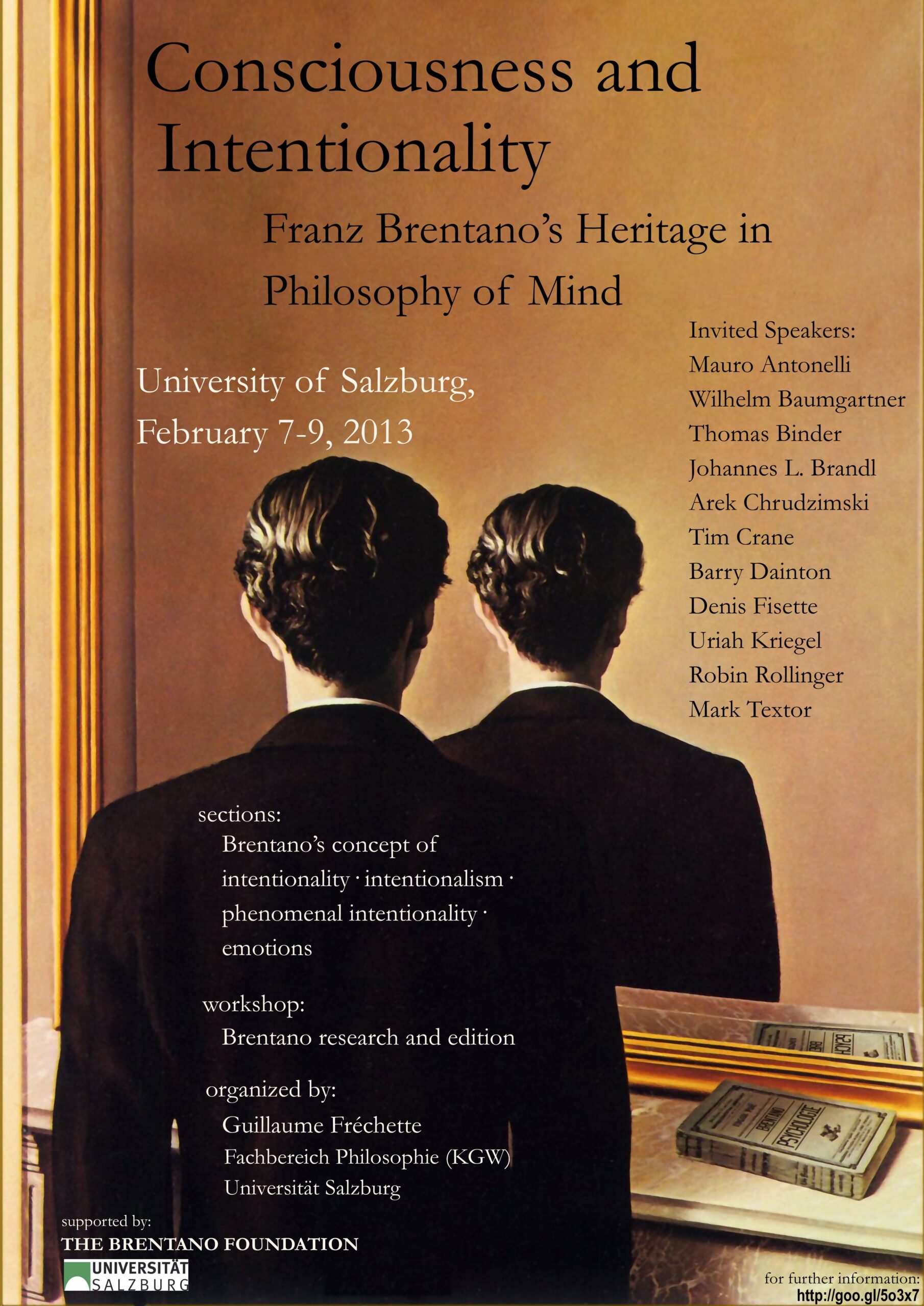 This conference will deal with these multiple intersections between Franz Brentanos philosophy and the contemporary philosophy of mind, taking into consideration issues related among others to Brentanos psychology, ontology, and theory of knowledge. Questions to be addressed may include but are not limited to phenomenal intentionality, internalism, non-conceptual content, disjunctivism, cognitive (and affective) phenomenology, self-awareness and time-consciousness. Contributions may take various angles: they may address for instance Brentanos conception of the mental from a critical, historical and/or exegetical perspective, or they may propose original accounts of intentionality and consciousness inspired by or critical of Brentanos insights on that matter.