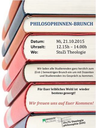 Philosphinnen-Brunch am Mittwoch, 21. Oktober 2015 ab 12.15 Uhr im „StuZI“-Theologie (Universitätsplatz 1, neben Furtwänglerpark)