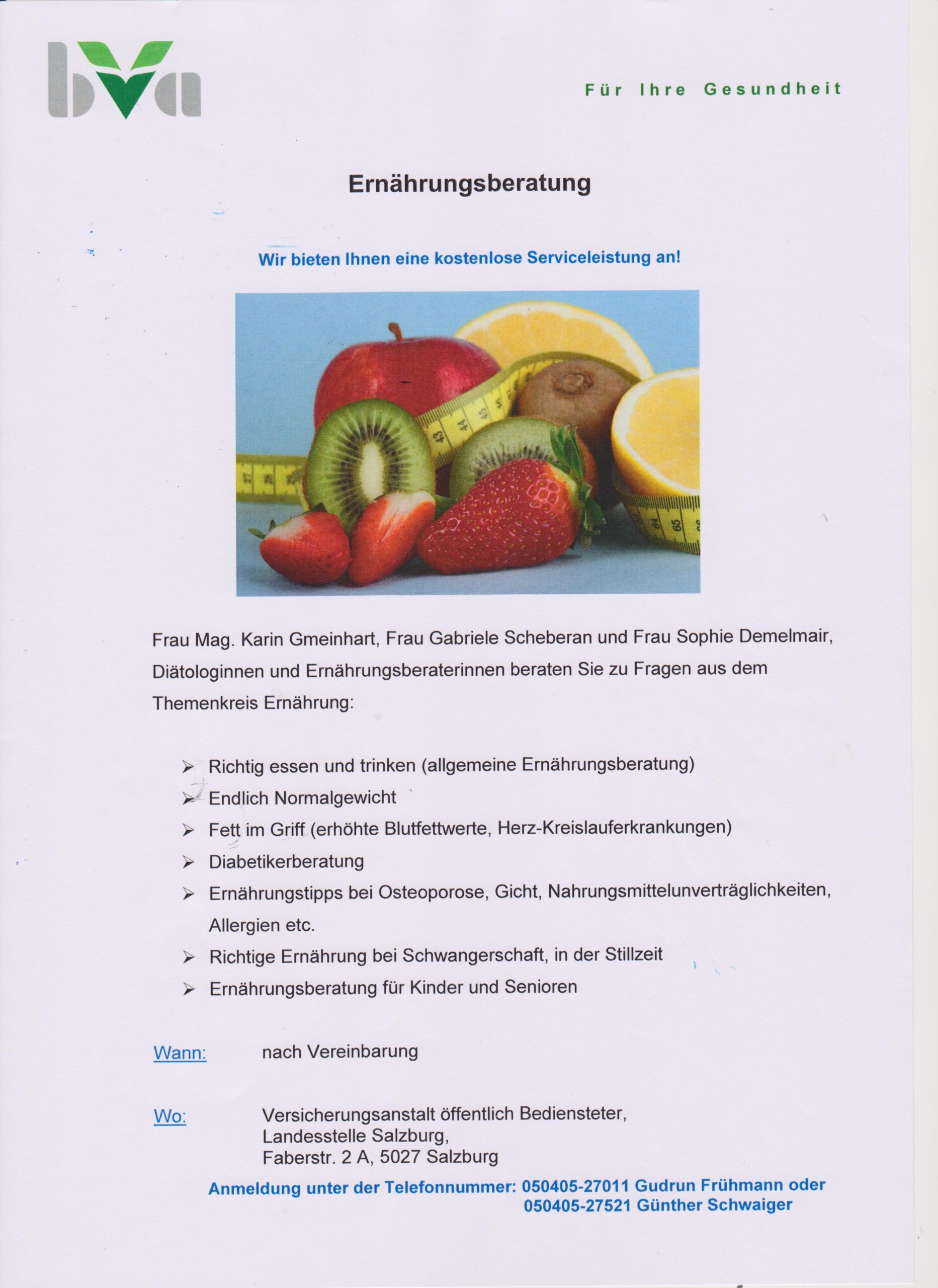 Für Interessierte bietet die BVA auch Termine bei Ernährungsberaterinnen an!