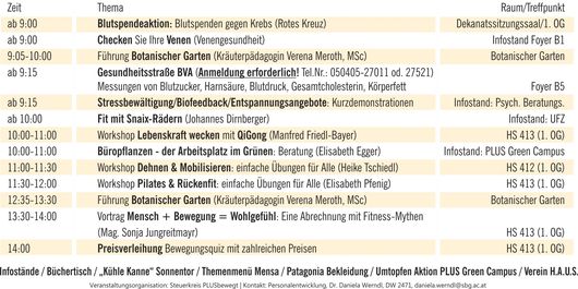 - Arbeitsplatz und Pflanzen: Umtopfaktion von Pflanzen aus den PLUS Green Campus Aktionen der vergangenen Jahre in der Zeit 12h00-13h00 am Plus Green Campusstand (first come first serve)
