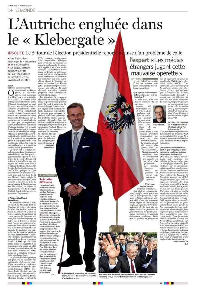| Fallend, Franz: L’Autriche est engluée dans le „Klebergate“. In: Le Monde vom 15.09.2016, [Interview]. [Datei] |