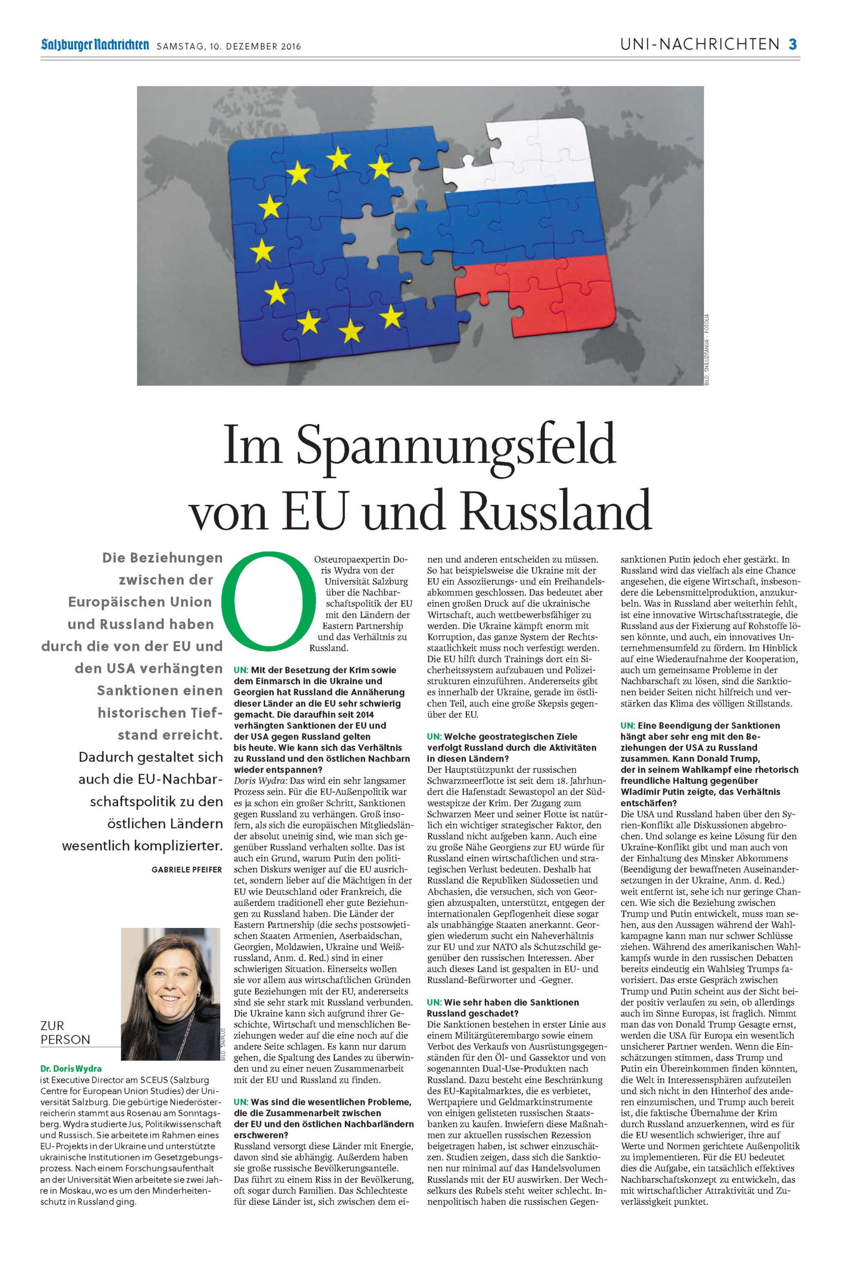 | Wydra, Doris: Im Spannungsfeld von EU und Russland. In: Salzburger Nachrichten vom 10.12.2016, [Interview]. [Datei] |