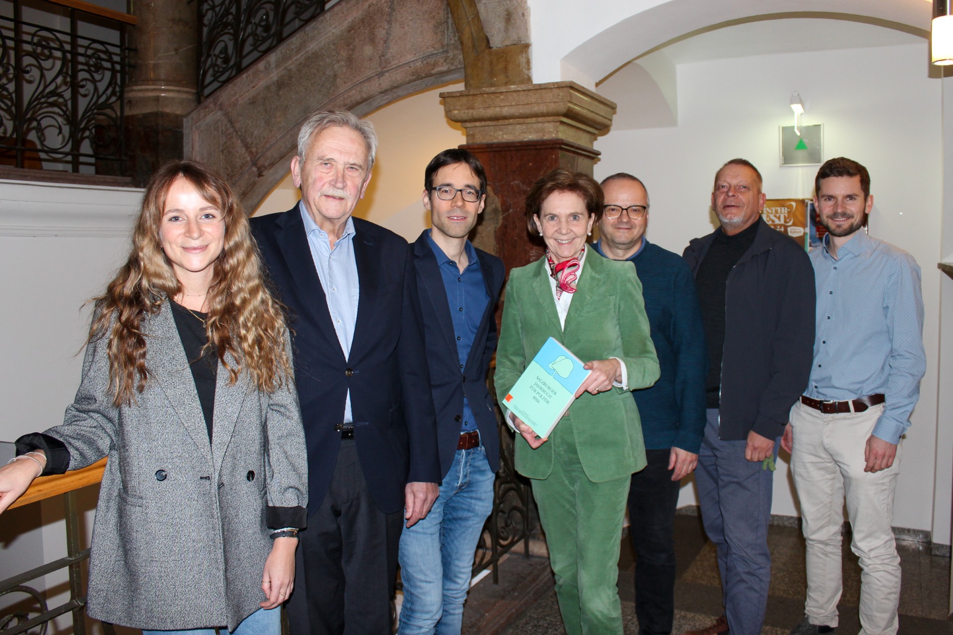 Im Zuge der Vorlesungsreihe wurde auch das neue „Salzburger Jahrbuch für Politik“ vorgestellt. In Anwesenheit der Präsidentin des Salzburger Landtages, Brigitta Pallauf (ÖVP), wurden insbesondere die klima- und energiepolitischen Inhalte des Bandes präsentiert. Dabei gingen Katharina Schöppl (Universität Bremen) und Samuel Kok (IIBW) auf ihre Forschungsergebnisse zur lokalen Ebene des Politikfeldes ein.