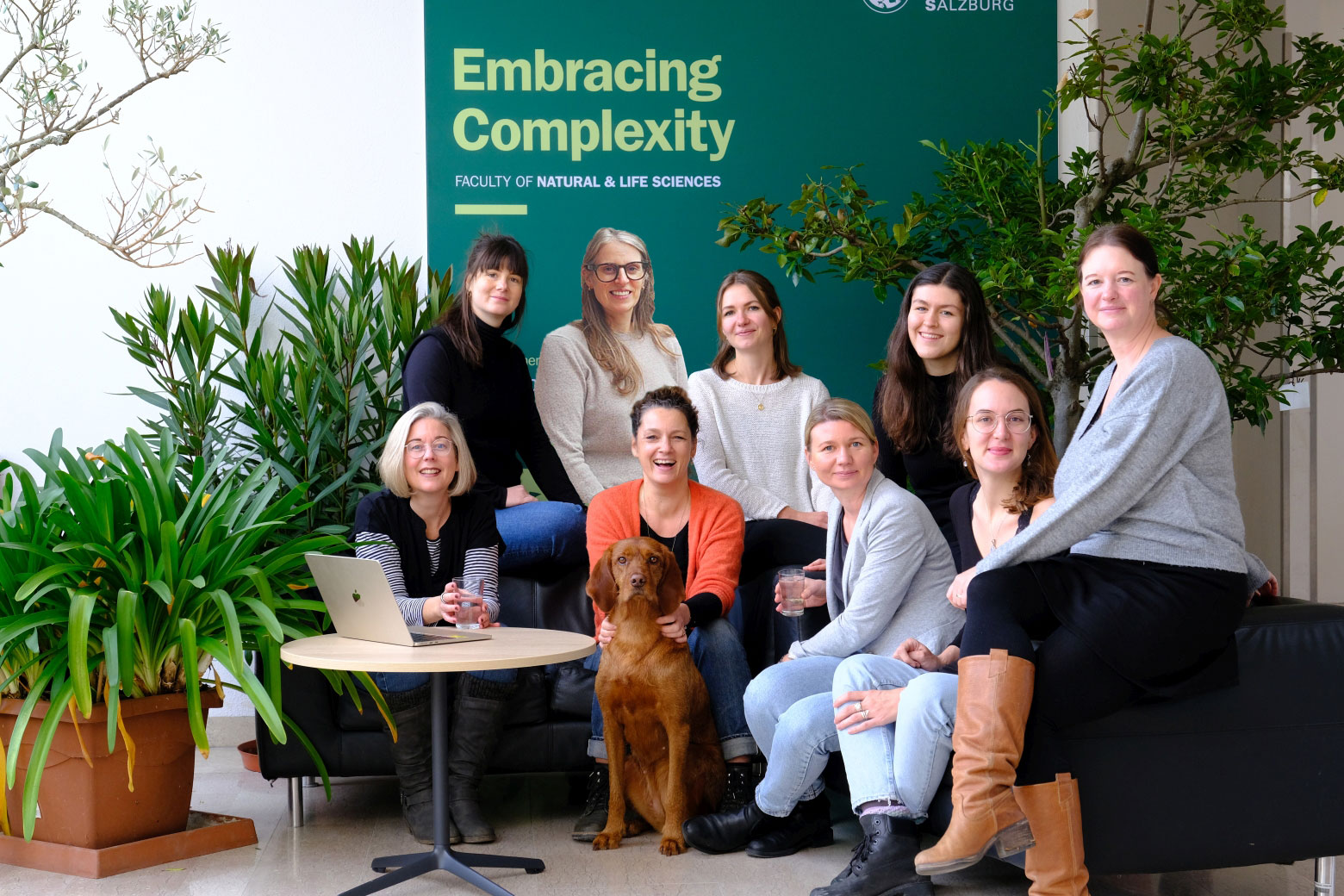 Hintere Reihe: Nicola Sommer (PH Salzburg, Betreuerin), Erika Thuminger-Fellner (PH Salzburg, Doktorandin), Isabell Budzynski (PLUS, Doktorandin), Michaela Bühler (PLUS, Doktorandin), Leoni Cramer (PLUS, externe Doktorandin, Assistentin Aufbaumodul), Anna Schreiner (PLUS, Doktorandin), Wolfgang Plaute (PH Salzburg, Betreuer).