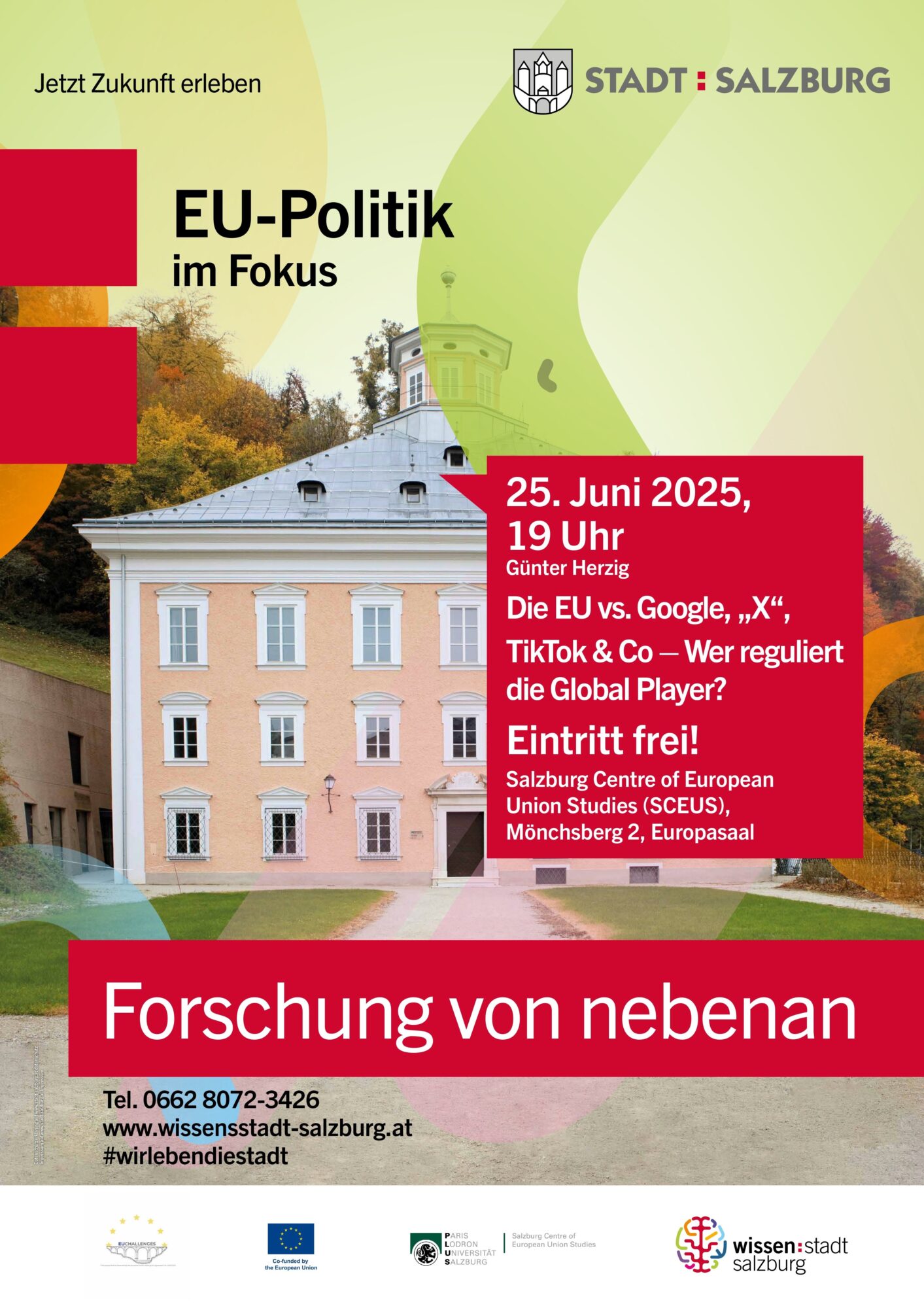 In the context of the seminar Challenges of European Integration we are privileged to welcome the following distinguished guest speaker at EDMUNDSBURG l Europasaal (HS 240) l Mönchsberg 2 | 5020 Salzburg: