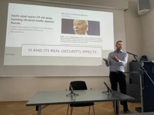 In his talk, Prof. Steele (University of Utah) explored the politics of vicarious identity in international relations, understood as processes of “living through the other.” Vicarious identity is evident in a number of settings, from sport, family and social ones through the crucial dynamics of international relations. The talk highlighted historical examples of vicarious identification and then explained European sympathies and support during the 2020s wars in Ukraine and Gaza.
