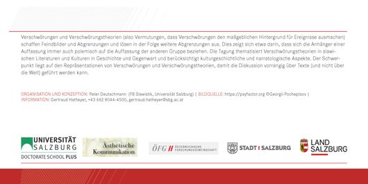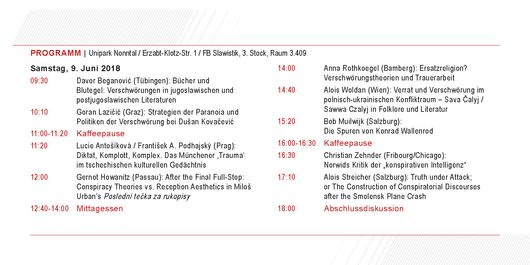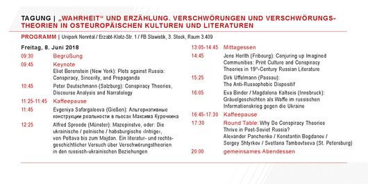 Am 8. und 9. Juni 2018 fand am FB Slawistik die Tagung „Wahrheit“ und Erzählung. Verschwörungen und Verschwörungstheorien in osteuropäischen Kulturen und Literaturen statt.