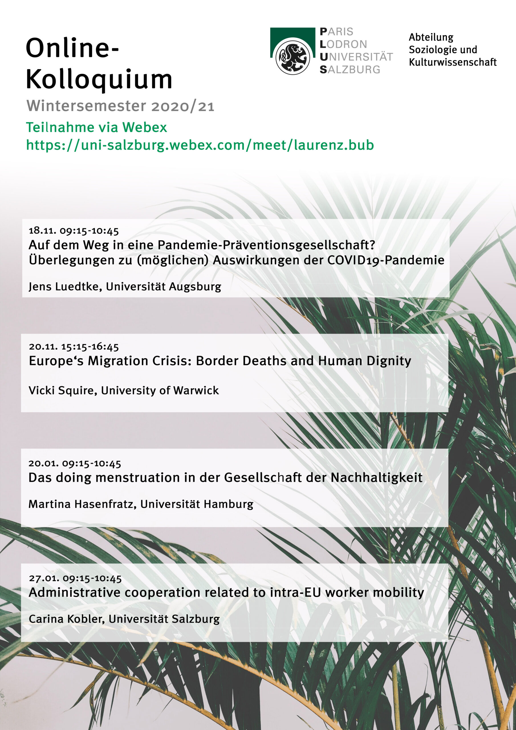 - Programm Soziologiekolloquium Wintersemester 2020/21