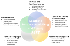 Der Forschungsschwerpunkt (FS) SLET beschäftigt sich mit der sportlichen Leistungsentwicklung im Training und Wettkampf. Ein spezieller Fokus wird in diesem Zusammenhang auch auf den Nachwuchsleistungssport gelegt.