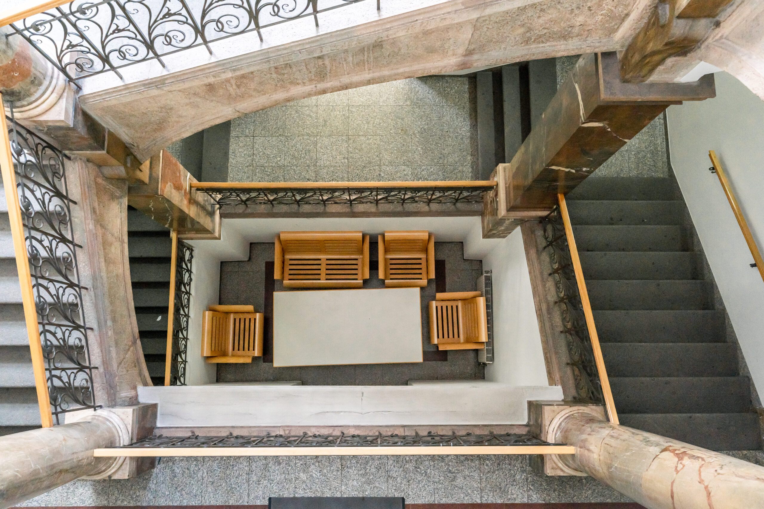 Common area 7: Lower staircase, conversation zone | 4 workstations