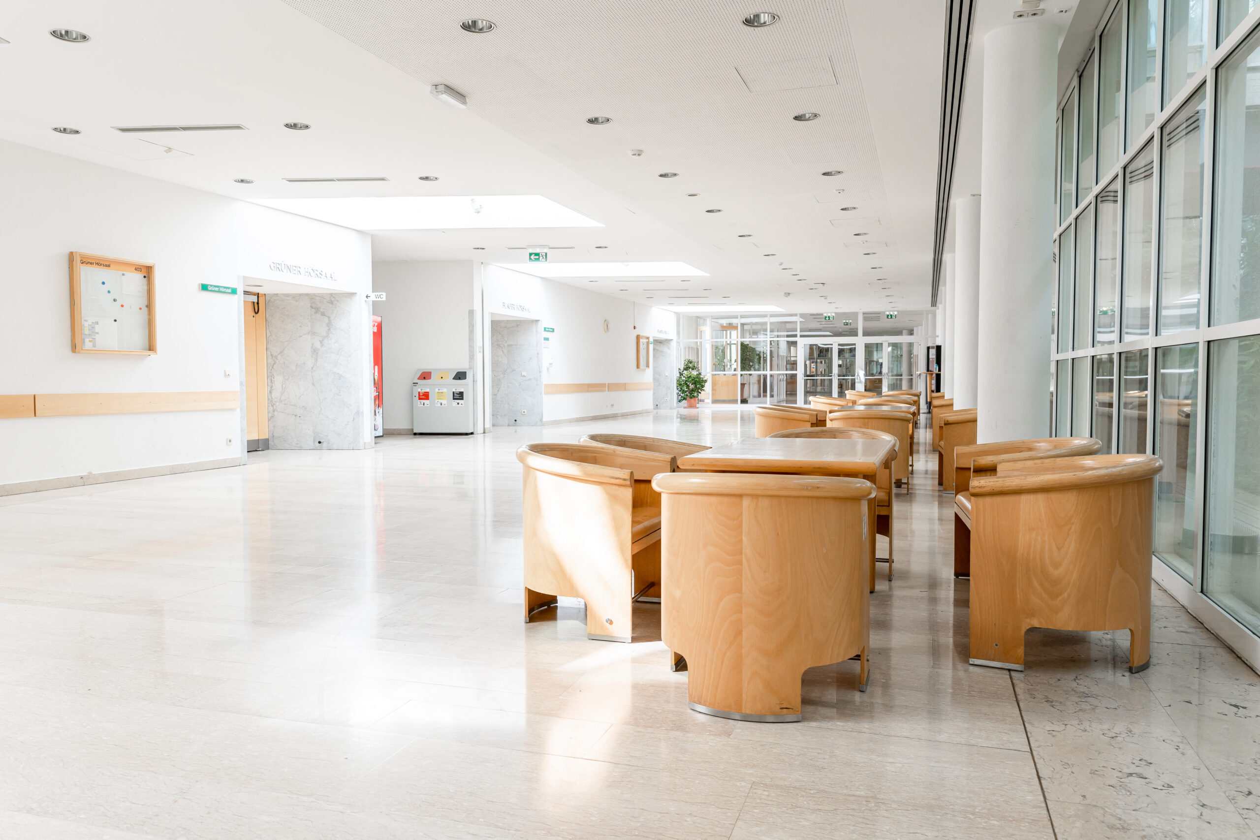 All six faculties of Paris Lodron University Salzburg have consumption-free common areas for students. Here students can exchange ideas after lectures, study together and consume food and drinks that they have brought with them (in the libraries only in the designated zones). The University Library also provides group study rooms for students at several locations.