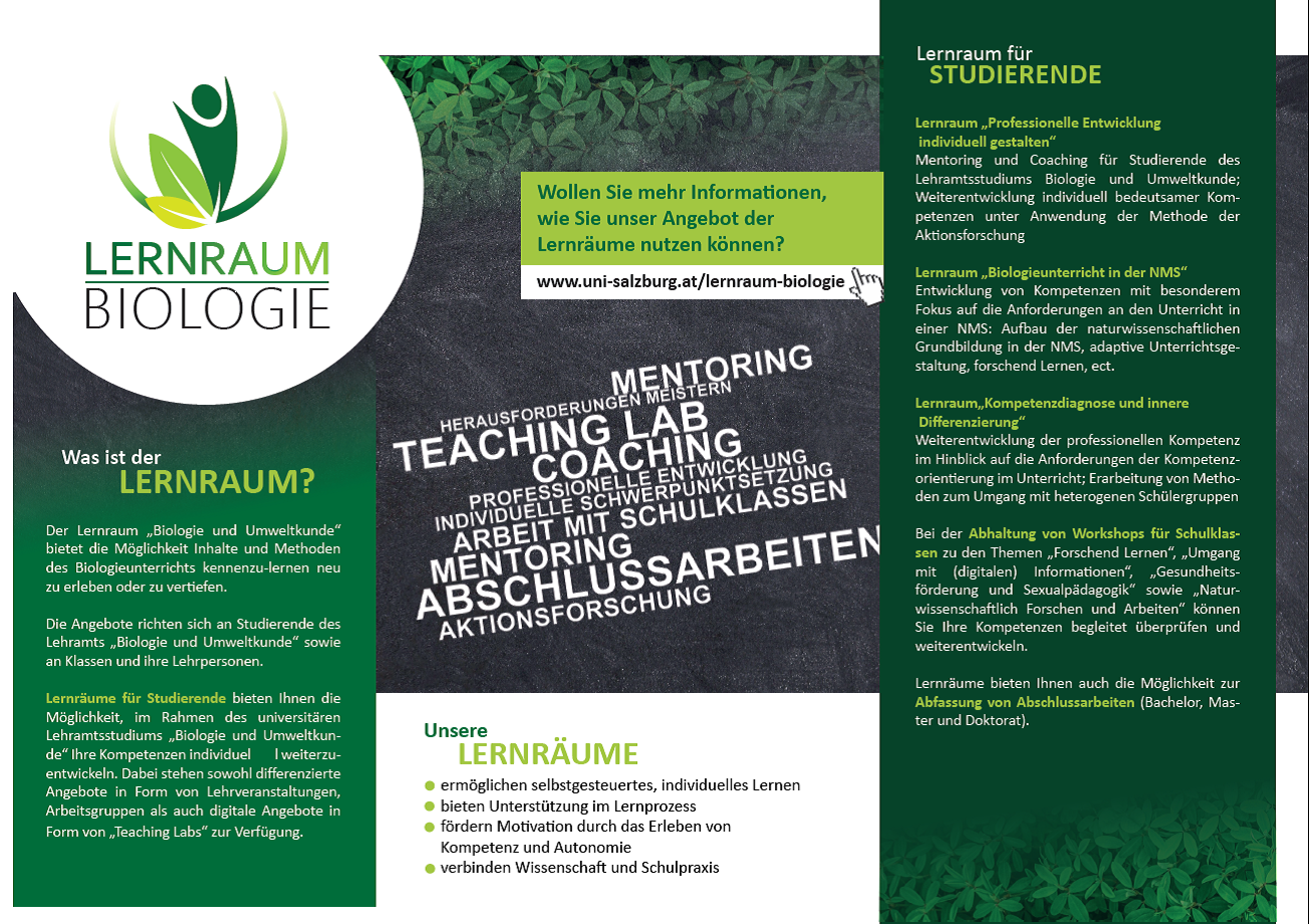 Studierende des Lehramtsstudiums Biologie und Umweltkunde haben nach erfolgreicher Absolvierung des zweiten Fachpraktikums (Modul 5/Bachelorstudium) die Möglichkeit bei der Konzeptionierung und Abhaltung von Workshops für Schulklassen mitzuwirken.