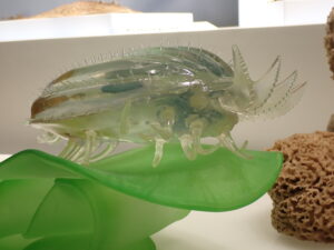 The recently opened exhibition of the Haus der Natur displays two new models of protists at 5,000 to 6,000× magnification ( https://www.hausdernatur.at/de/). The models of a ciliate (Ciliophora) of the genus Euplotes and of a testate amoeba (Cercozoa) of the genus Euglypha were created in close collaboration with the research group Protistology of Assoc. Prof. Dr. Sabine Agatha. The 3D models have prominent position in the showcase “Biodiversity” and demonstrate impressively the complexity of unicellular organisms. Actually, these single cells are consummate organisms that perform locomotion, feed, digest, defecate, proliferate, and even have sex. The numerous genders of ciliates necessitate a particularly elaborate mate selection by means of pheromones.