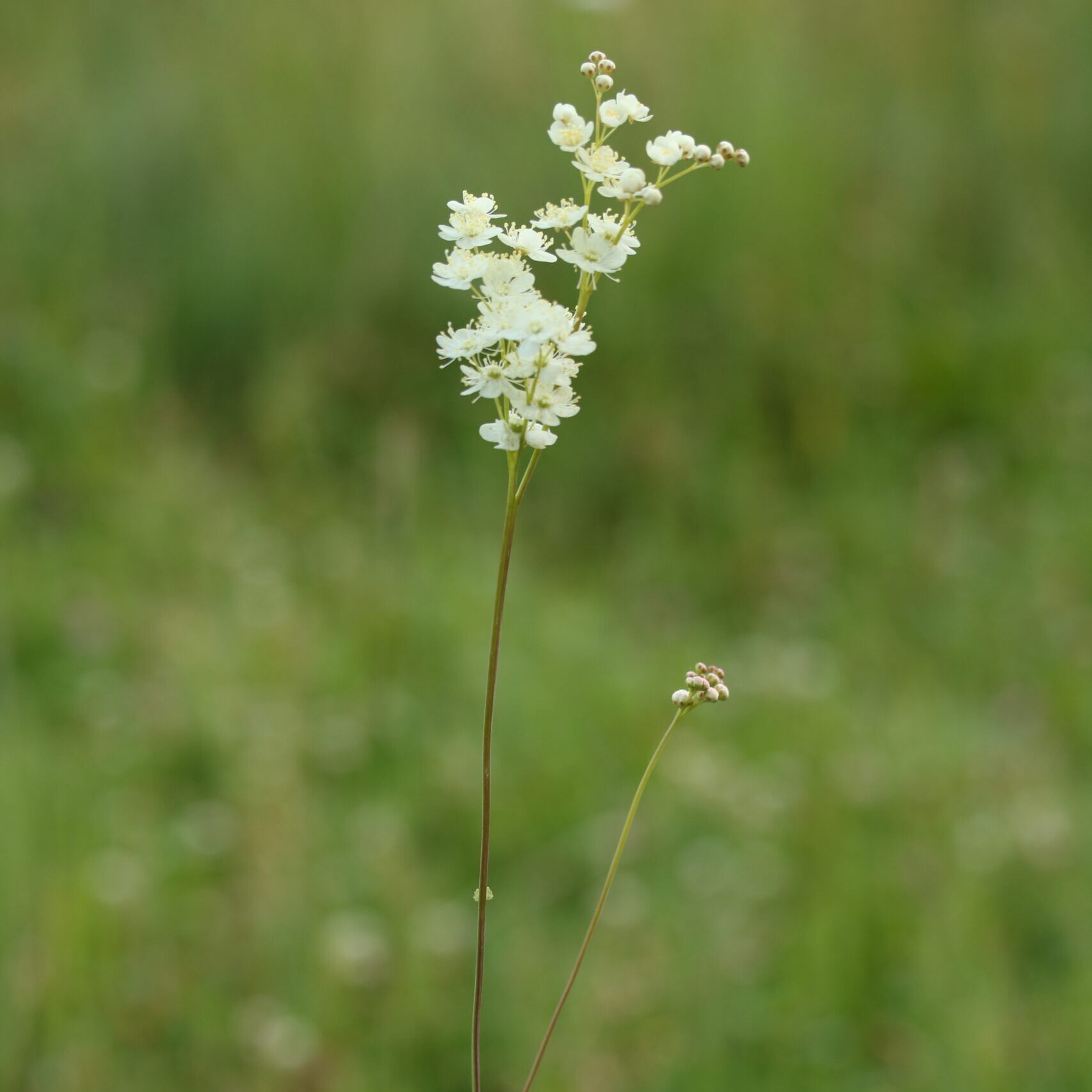 Das Kleine Mädesüß wird bis zu 80 cm hoch. Die kleinen milchweißen Blüten erscheinen zwischen Juni und August und sind außen oft rötlich überlaufen. Die auffällig strahlig ausgebreiteten Griffel laden Bestäuber dazu ein, sich niederzulassen. Auch Selbstbestäubung ist möglich. Hierbei krümmen sich die inneren Staubblätter zur Narbe hin und bestäuben den Griffel. Die Samen besitzen an der Spitze einen kleinen Haken (Griffelrest) und sind behaart. Diese Eigenschaften der “Hakelfrucht” fördern die Ausbreitung der Samen, die sich wie eine Klette an Fell oder Gewand heften. Das Kleine Mädesüß findet man auf nährstoffarmen Wiesen, lichten Wäldern und an Gebüschsäumen.