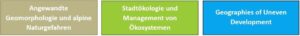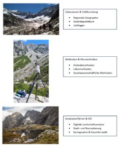 Das Studium der Geographie umfasst mehrere Teildisziplinen. In der Physischen Geographie beschäftigst du dich mit Themen wie Klimadynamiken, Boden- und Vegetationsveränderungen sowie Prozessen, die die Erdoberfläche formen. In der Humangeographie steht das Verständnis gesellschaftlicher Entwicklungen und natürlicher Prozesse in ihrer räumlichen Dimension im Mittelpunkt. Im Fokus stehen aktuelle Herausforderungen wie der Klimawandel, globale Ressourcen, ökologische Krisen und Naturgefahren. Dabei ist auch eine gewisse Reiselust wichtig, da du dein Wissen in zahlreichen Exkursionen und Geländepraktika vertiefen wirst.