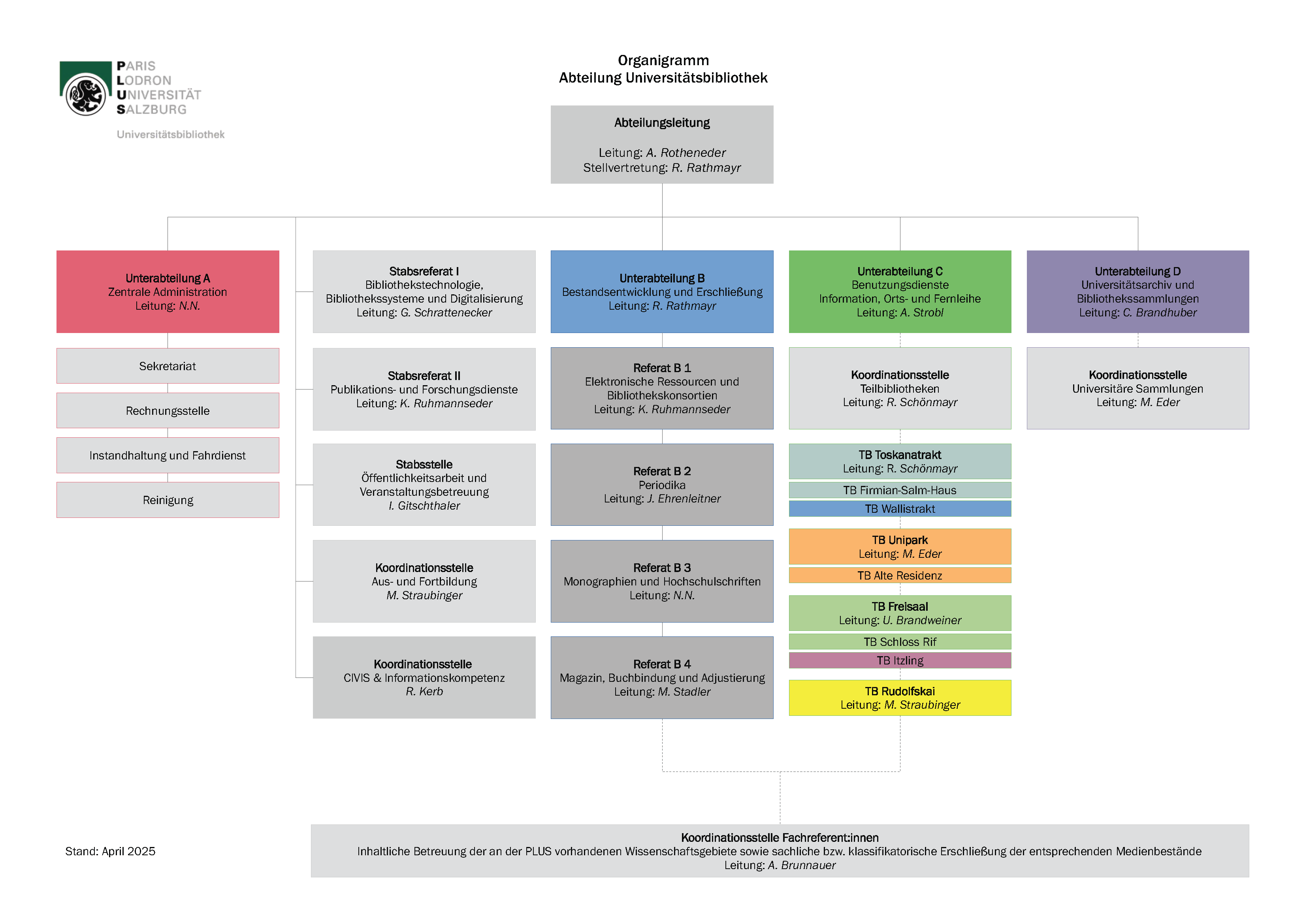 - die Beschaffung, Erschließung und Bereitstellung von bedarfsgerechten Literatur- und Informationsressourcen für Studium, Lehre und Forschung an der Universität Salzburg sowie die interessierte Öffentlichkeit;