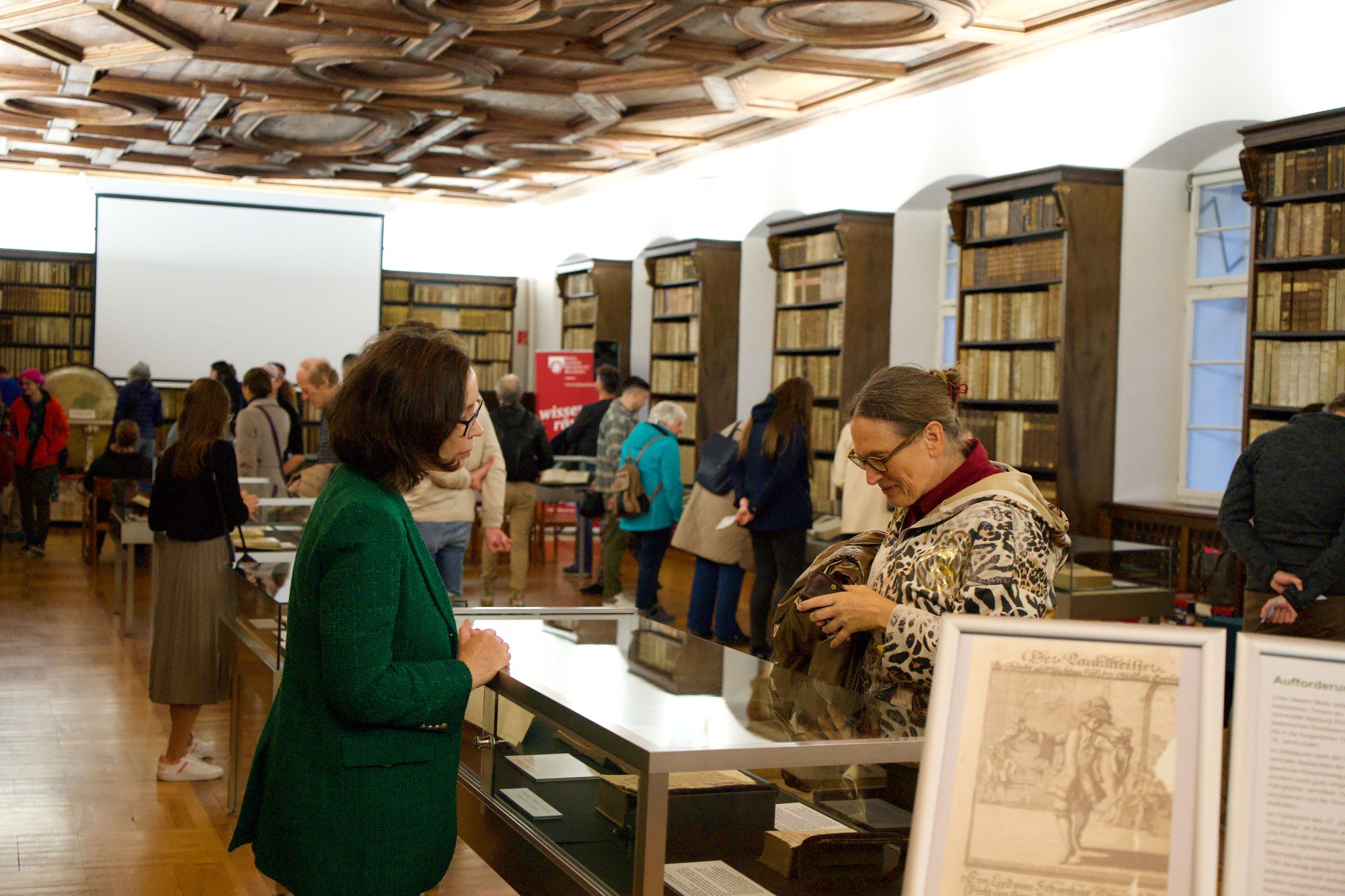 Auch in diesem Jahr war die Universitätsbibliothek Salzburg Teil der Langen Nacht der Museen und bot gemeinsam mit den Derra de Moroda Dance Archives eine faszinierende Reise in die Welt des höfischen Tanzes. Unter dem Motto „Aufforderung zum Tanz“ begeisterte die Ausstellung die Besucher*innen mit Einblicken in die Tanzkulturen der Renaissance bis ins 18. Jahrhundert. Tanz wurde als Ausdruck gesellschaftlicher Kommunikation und Repräsentation erlebbar gemacht, insbesondere in den Adelshäusern jener Zeit. Ein besonderes Highlight waren die Spezialführungen, die die Gäste mit fundierten Erläuterungen und historischen Geschichten in den Bann zogen. Für Kinder und kreative Teilnehmer*innen gab es zudem die Möglichkeit, eigene Kostümentwürfe zu gestalten – inspiriert nach historischen Vorlagen.Fotografische Impressionen gibt es in der Bildergalerie.