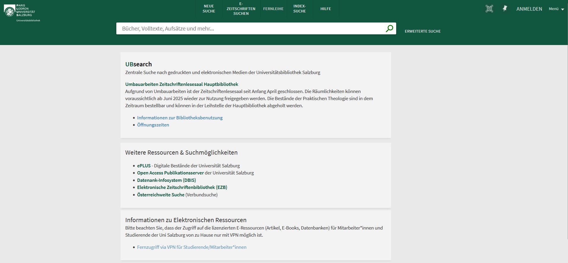 Freie und lizenzierte Suchportale und Datenbanken der Universitätsbibliothek Salzburg.